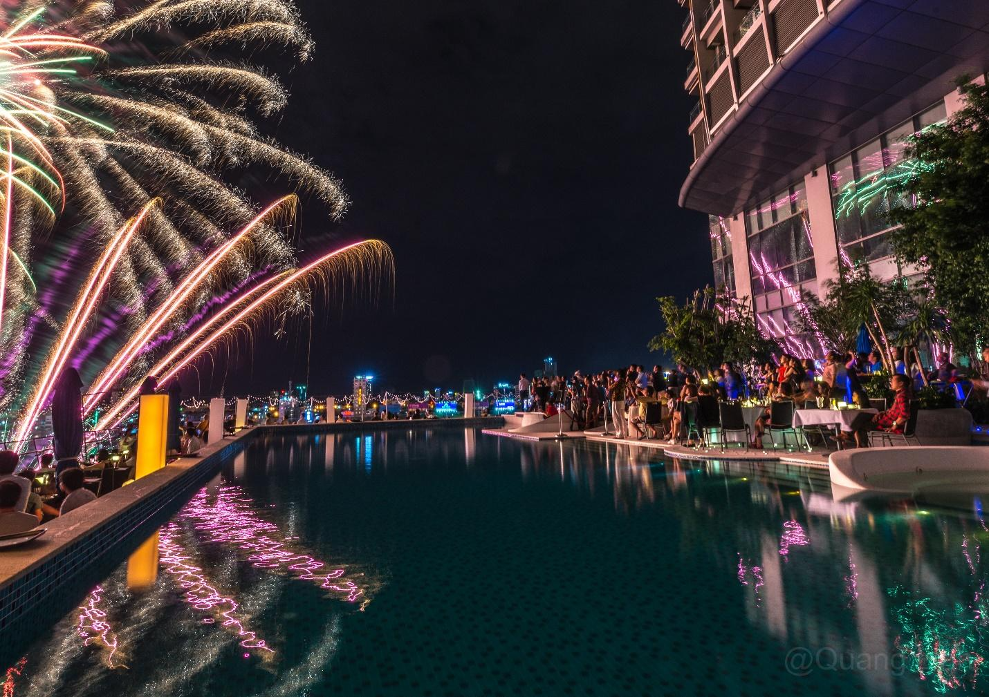 Một trải nghiệm khác biệt khác để xem pháo hoa là tại Sky36 - vị trí đắc địa từ tầng 36 của khách sạn Novotel Danang Premier Han River và cũng là của toàn thành phố để ngắm pháo hoa. Khi những màn pháo hoa bung tỏa, cũng là lúc Sky bar cao nhất thành phố sẽ trở nên cuồng nhiệt với những màn pool party, DJ, nhóm nhảy, ánh sáng nghệ thuật, và những ly cocktail thơm nồng…Từ đây, người xem sẽ như có cảm giác được chạm tay vào bầu trời đang bung nở những bông pháo rực rỡ, để từ đó săn được cho mình những bức ảnh độc lạ nhất mùa Lễ hội Pháo hoa này.