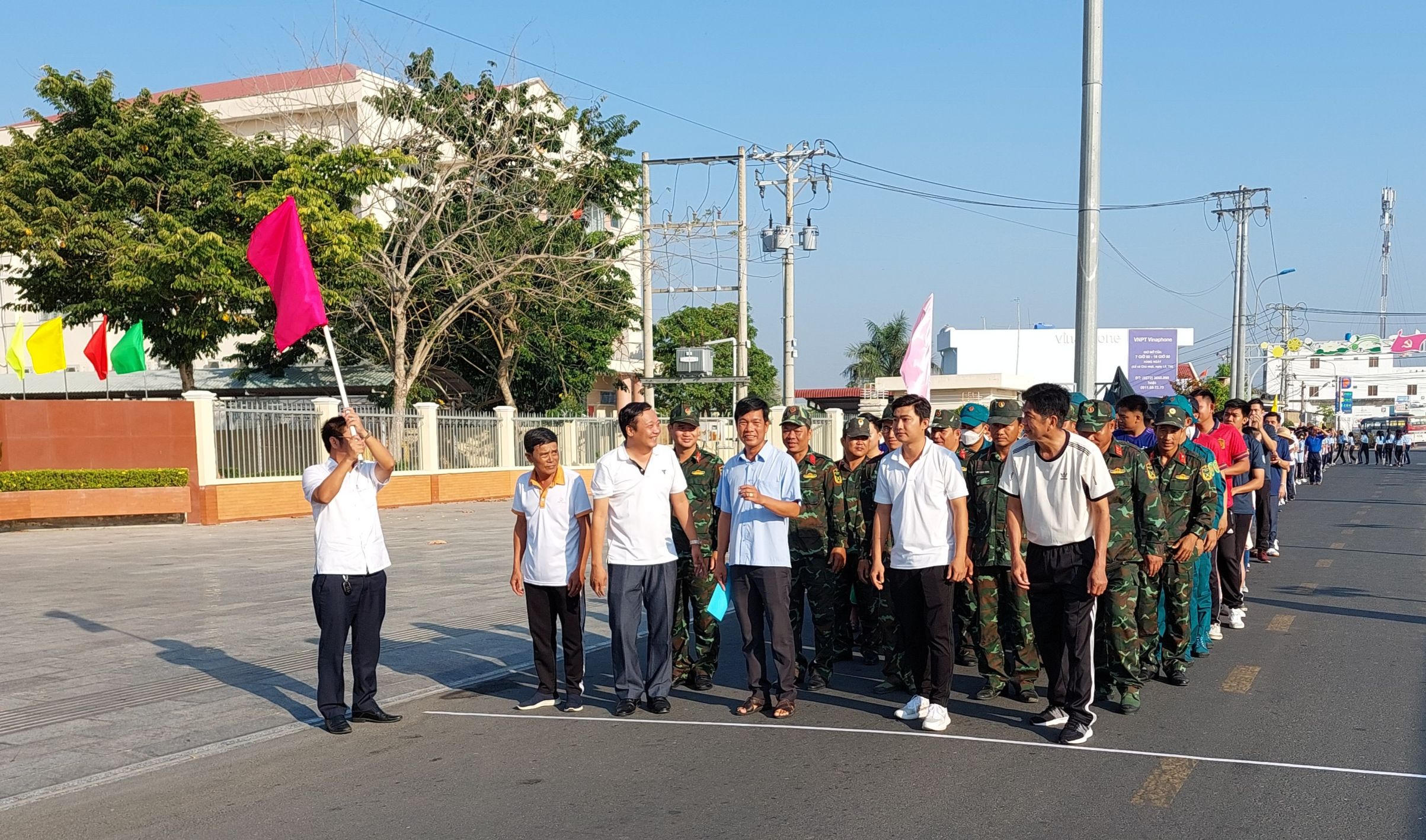 Ông Võ Trần Tuấn Thanh - Tỉnh ủy viên, Bí thư huyện ủy Tân Trụ phất cờ cho các vận động viên tham gia chạy bộ |