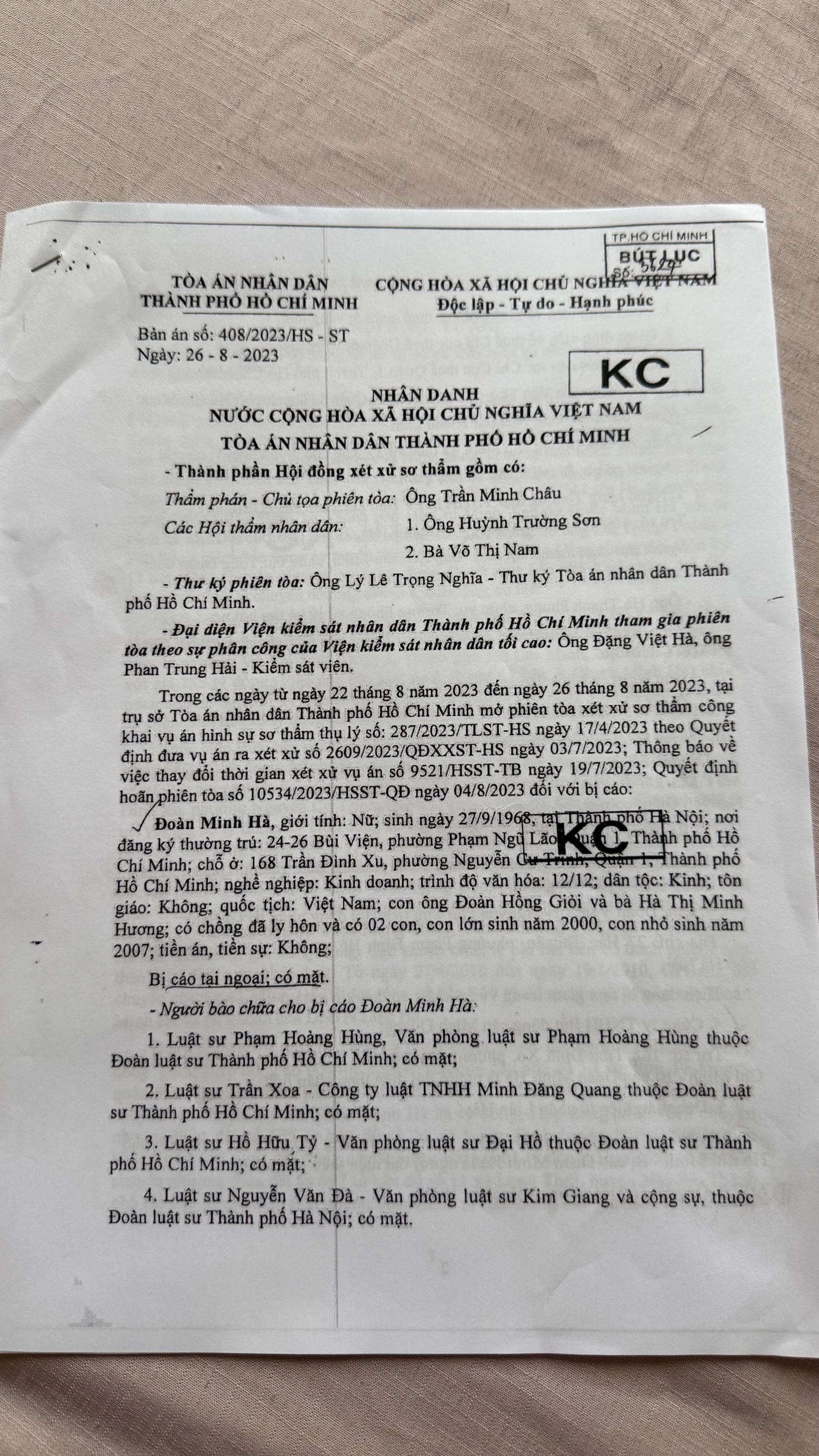 Từ đó, TAND TP HCM tuyên phạt bị cáo Hà 4 năm tù và phải nộp lại số tiền thuế 20,786 tỷ đồng.