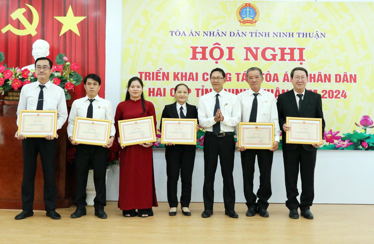 Với những kết quả đạt được trong năm 2023, TAND tỉnh Ninh Thuận được Chánh án TAND Tối cao tặng danh hiệu “Cờ thi đua của TAND” năm 2023 cho 2 tập thể, tặng danh hiệu “Tập thể lao động xuất sắc” cho 6 tập thể, tặng Bằng khen cho 6 cá nhân, tặng “Kỷ niệm chương vì sự nghiệp tòa án” cho 4 công chức và 3 vị Hội thẩm nhân dân.
