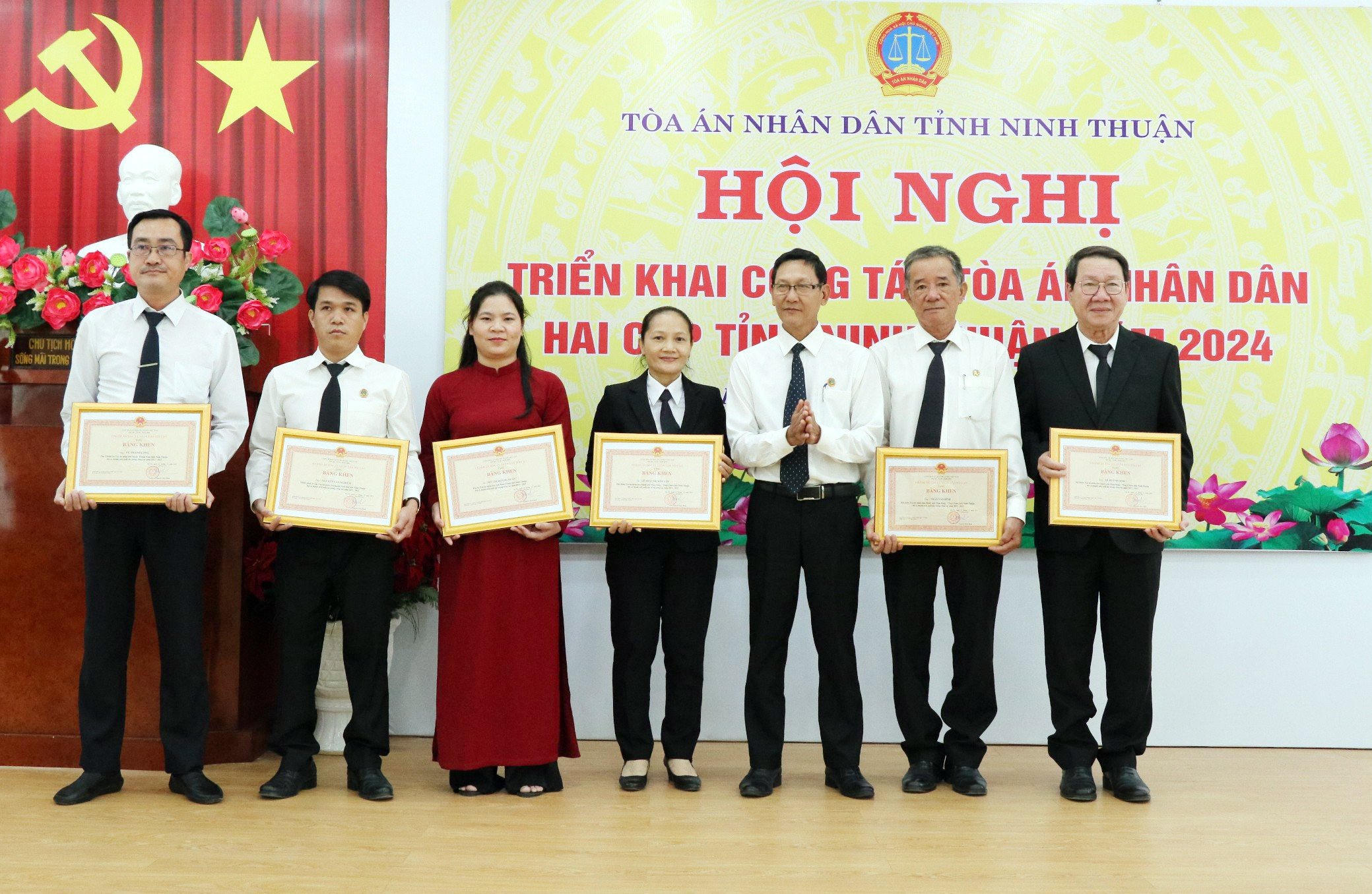 Chánh án TAND tỉnh Ninh Thuận tặng danh hiệu “Lao động tiên tiến” cho 3 tập thể, 101 cá nhân, tặng danh hiệu “Chiến sĩ thi đua cơ sở” cho 15 cá nhân, tặng Giấy khen cho 1 tập thể, 37 cá nhân và 21 vị Hội thẩm nhân dân…