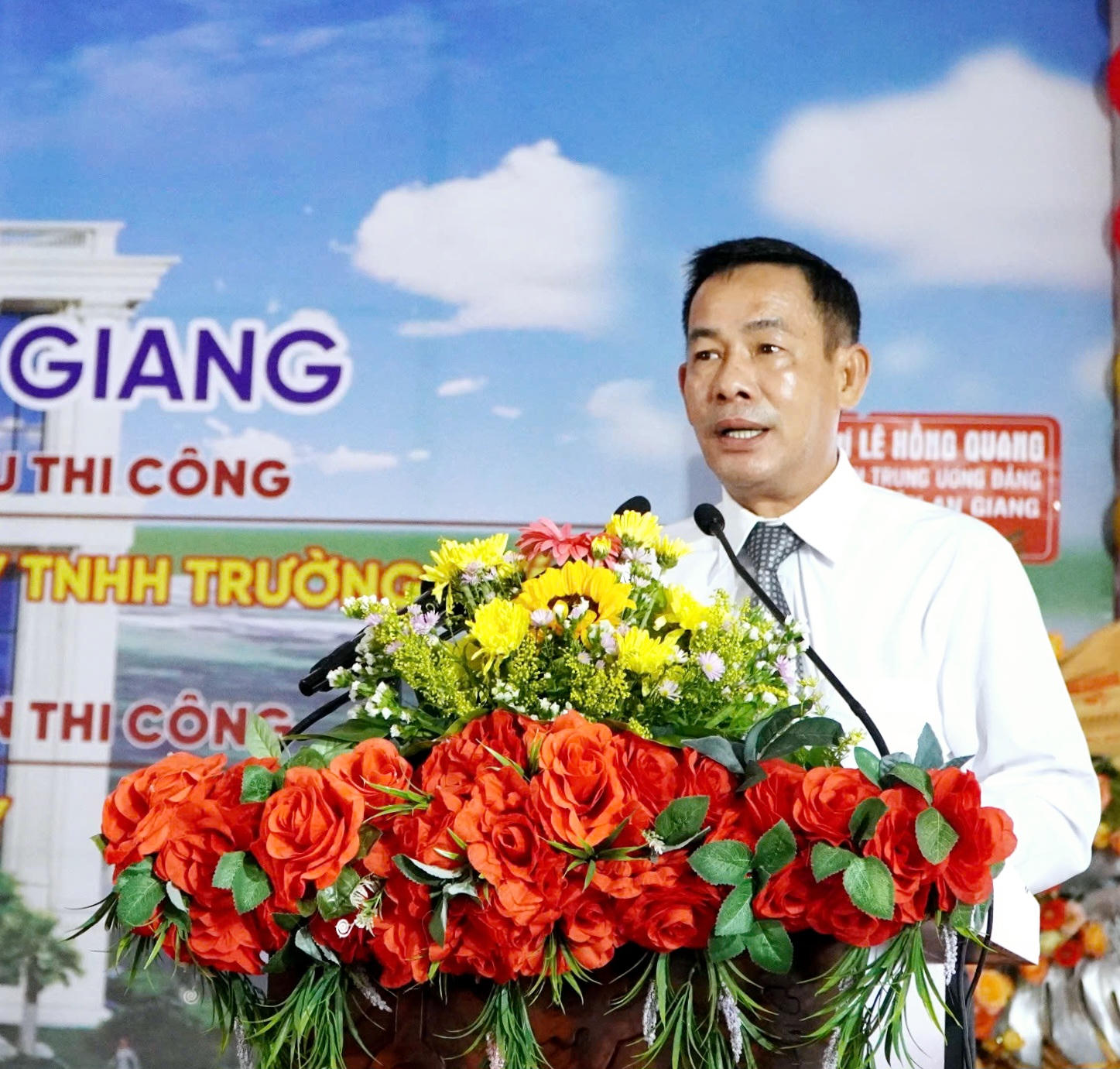 Chánh án TAND tỉnh Kiên Giang Võ Kế Nghiệp phát biểu tại buổi lễ khởi công xây dựng trụ sở TAND tỉnh Kiên Giang. |