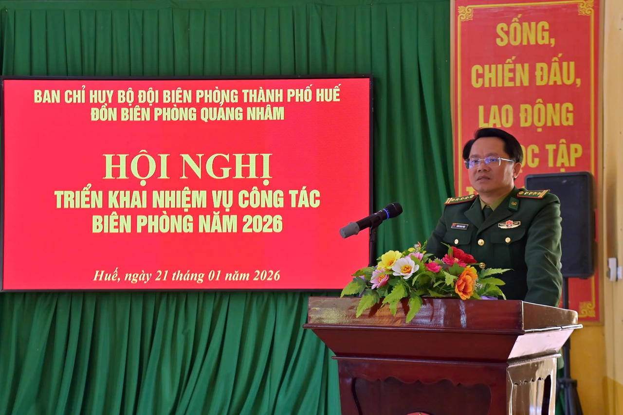 (PLVN) - Trong hai ngày 21 và 22/1, Đoàn công tác của Ban Chỉ huy Bộ đội Biên phòng (BĐBP) TP Huế do Đại tá Đặng Ngọc Hiệu, Bí thư Đảng ủy, Chính ủy Ban Chỉ huy BĐBP TP Huế làm trưởng đoàn đã đến dự và chỉ đạo Hội nghị triển khai nhiệm vụ công tác Biên phòng năm 2026 tại các Đồn Biên phòng đóng quân trên tuyến biên giới Việt Nam - Lào của TP Huế.