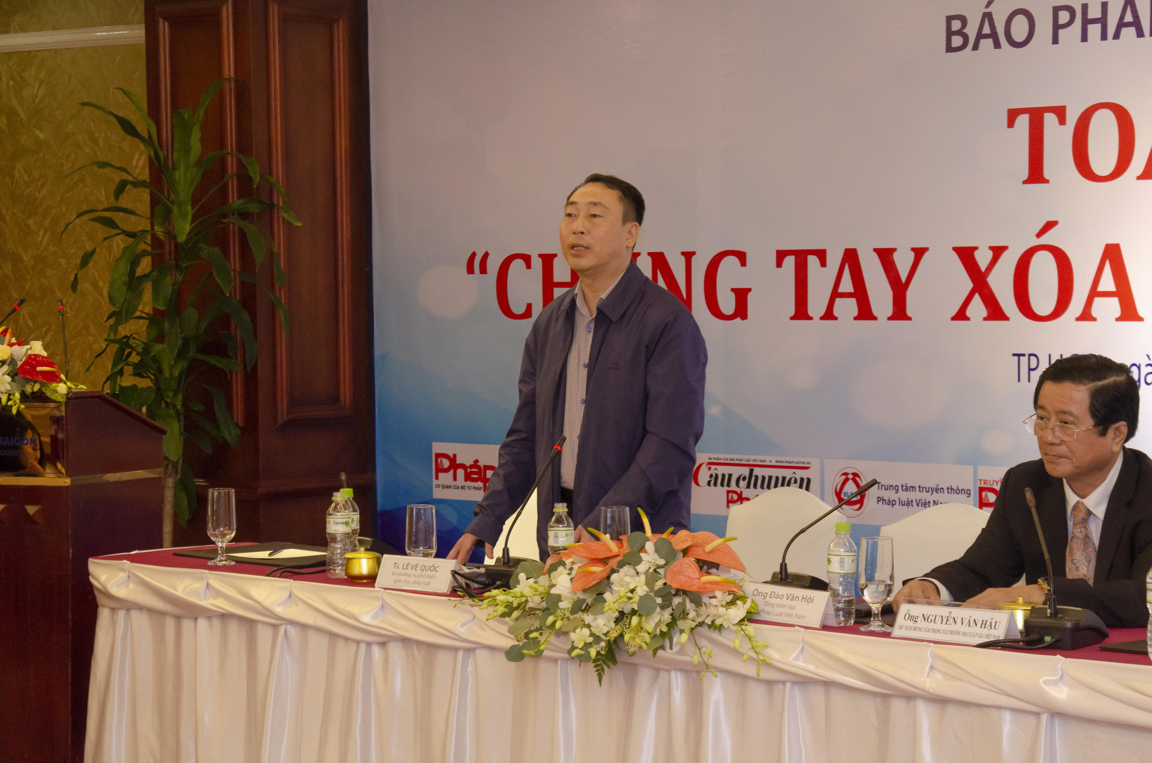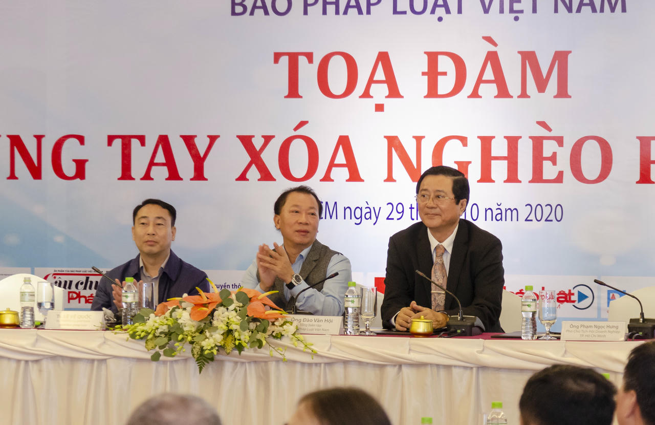 (PLVN) -Sáng 29/10, tại TP. Hồ Chí Minh, Báo Pháp luật Việt Nam đã phối hợp với Vụ Phổ biến, giáo dục pháp luật (PBGDPL), Bộ Tư pháp tổ chức Tọa đàm “Chung tay xóa nghèo pháp luật” với chủ đề: "Nâng cao trách nhiệm của các tổ chức cá nhân trong công tác PBGDPL". Tọa đàm do TS. Đào Văn Hội, Tổng Biên Tập Báo PLVN và TS. Lê Vệ Quốc, Vụ trưởng Vụ PBGDPL đồng chủ trì.