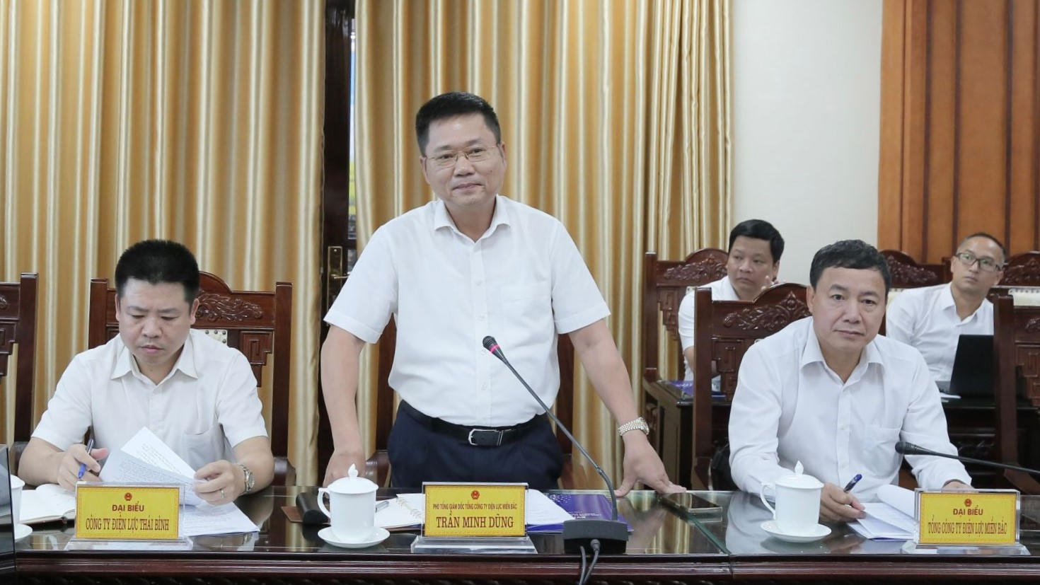 Ông Trần Minh Dũng - Phó Tổng Giám đốc Tổng Công ty Điện lực miền Bắc phát biểu tại buổi làm việc với tỉnh Thái Bình. |