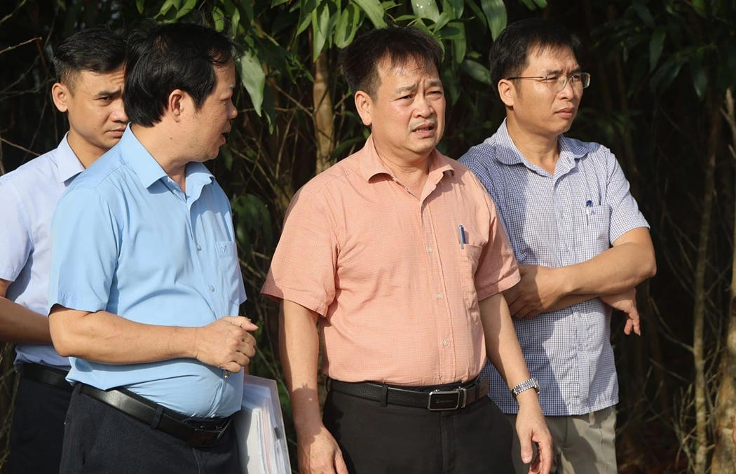 Ông Nguyễn Cao Phúc, Phó Chủ tịch HĐND tỉnh Quảng Ngãi (áo cam) đi kiểm tra thực tế hiện trường. |