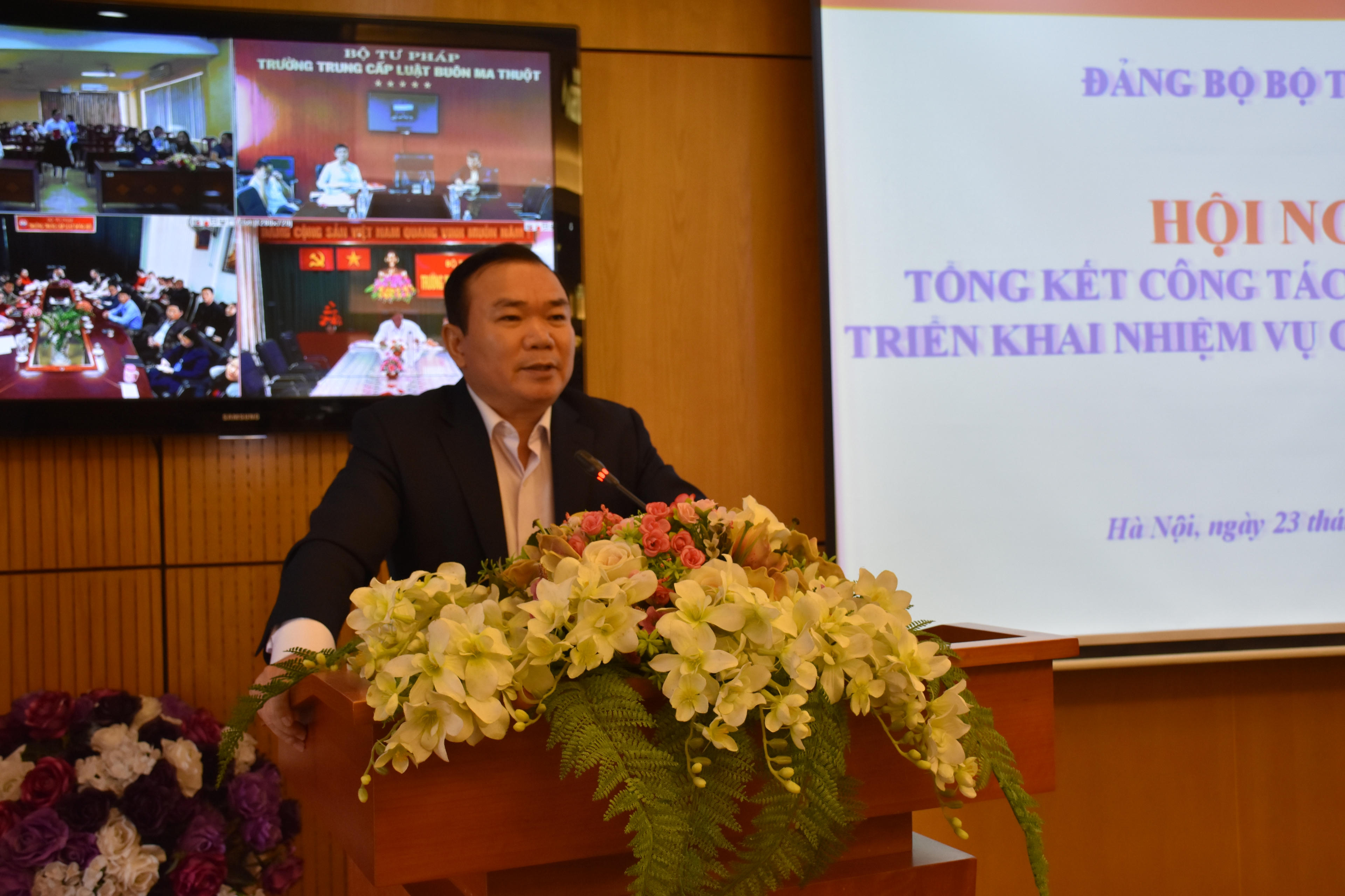 Tham dự và chỉ đạo Hội nghị có đồng chí Trương Xuân Cừ, Phó Bí thư Đảng ủy Khối các cơ quan Trung ương; Bí thư Ban Cán sự Đảng, Bộ trưởng Bộ Tư pháp Lê Thành Long; Bí thư Đảng ủy, Thứ trưởng Bộ Tư pháp Phan Chí Hiếu; Phó Bí thư Đảng ủy, Thứ trưởng Bộ Tư pháp Nguyễn Khánh Ngọc; Phó Bí thư thường trực Đảng uỷ Nguyễn Kim Tinh.