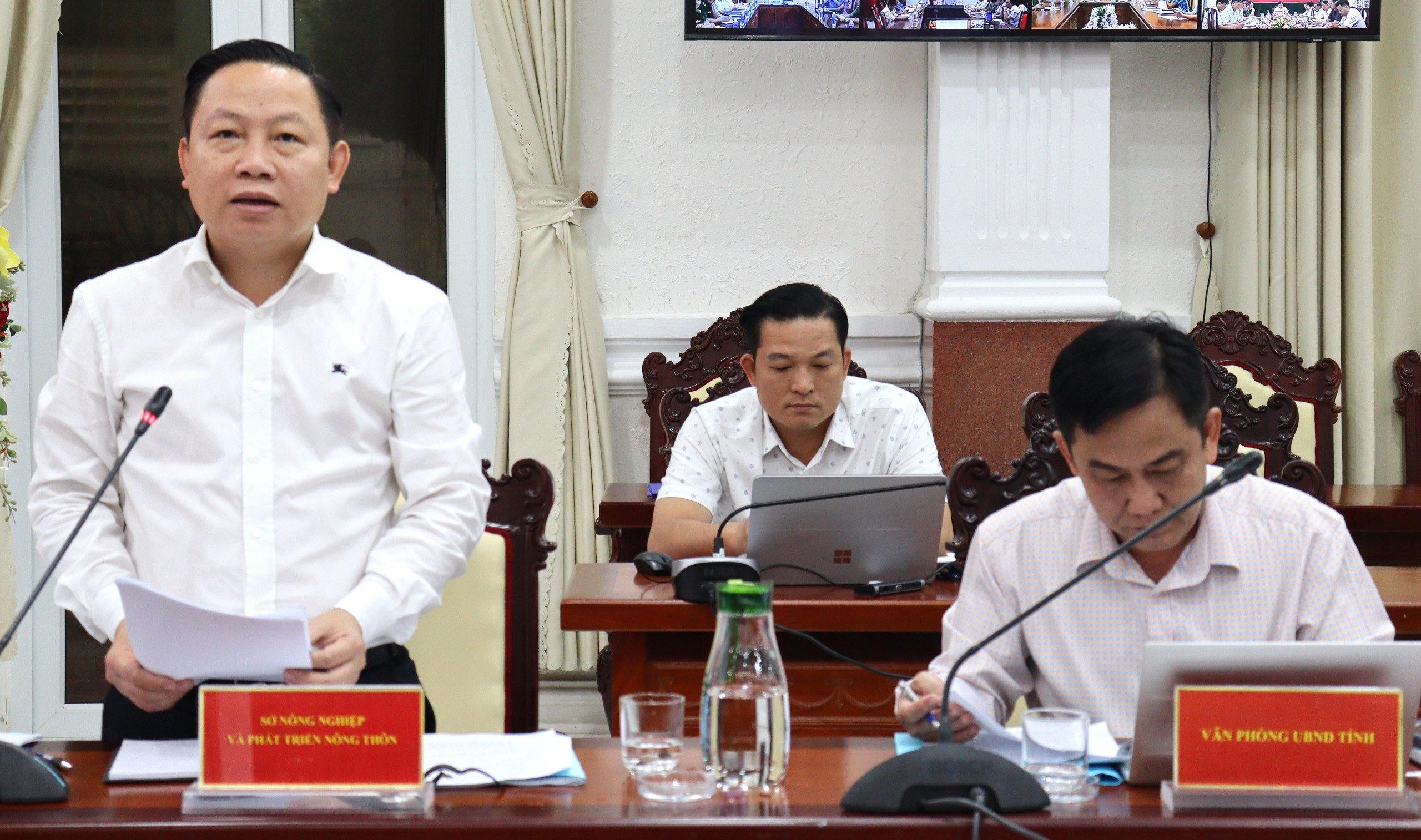 Ông Lê Hữu Toàn - Giám đốc Sở Nông nghiệp và Phát triển nông thôn tỉnh Kiên Giang báo cáo các nhiệm vụ được giao trong quá trình thực hiện công tác chống khai thác IUU thời gian qua. |
