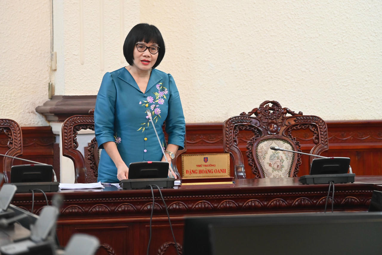 Thứ trưởng Đặng Hoàng Oanh phát biểu kết luận cuộc họp. |