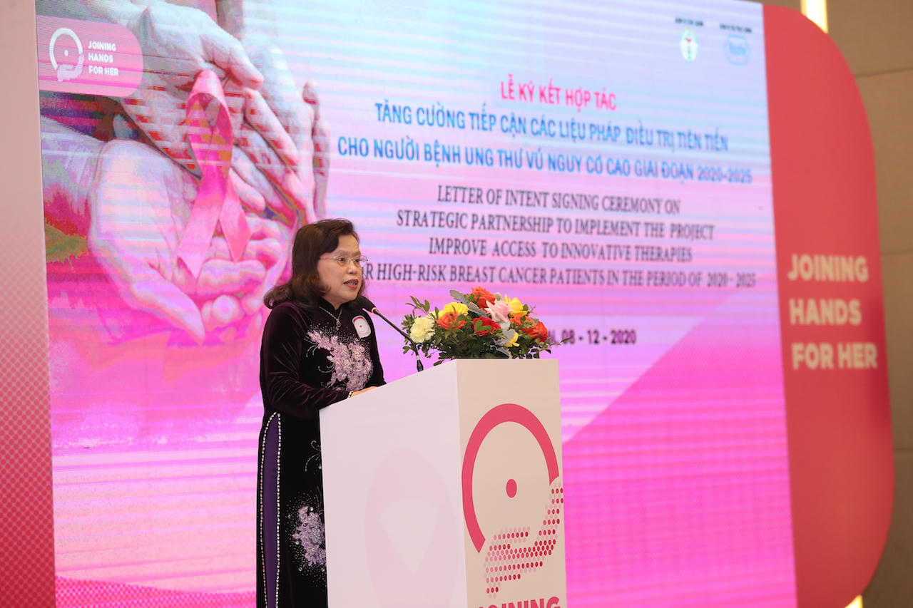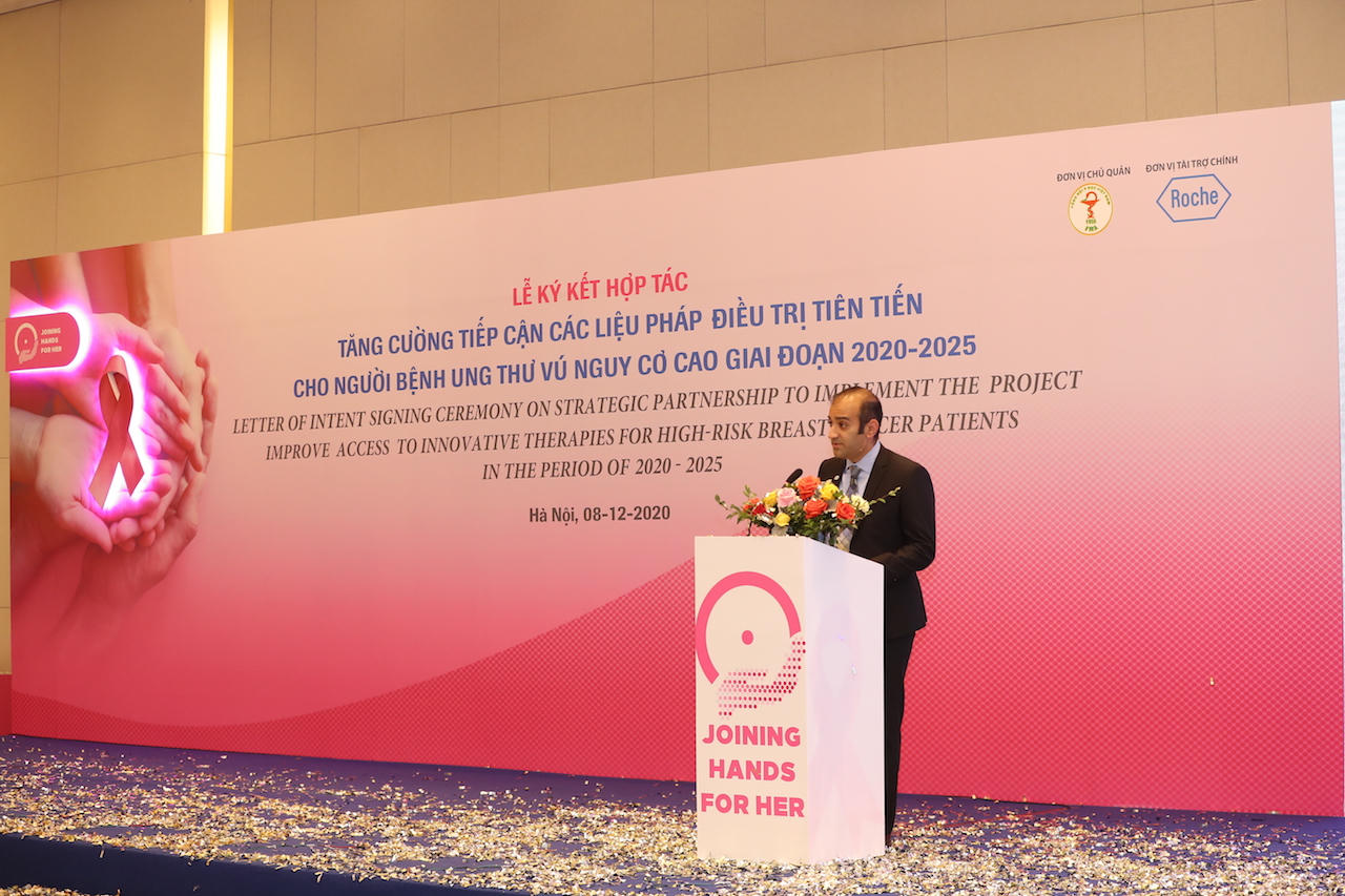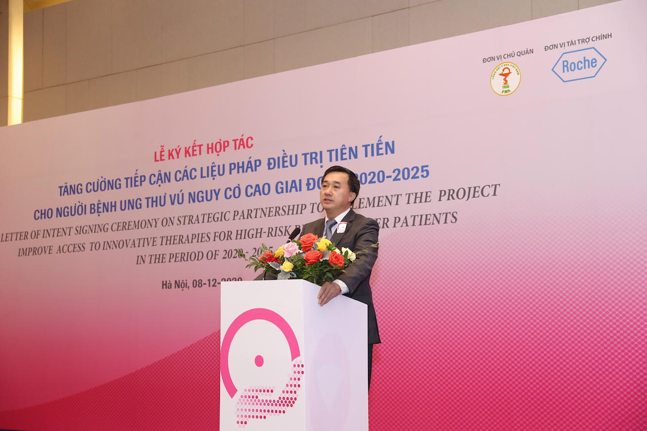 GS.TS. Trần Văn Thuấn, Thứ trưởng Bộ Y Tế cho biết: “Tại Việt Nam, Chính phủ đã ban hành Quyết định số 376/QĐ-TTg phê duyệt Chiến lược quốc gia phòng, chống bệnh ung thư, tim mạch, đái tháo đường, và các bệnh không lây nhiễm khác giai đoạn 2015 – 2025. Trong đó phòng chống bệnh ung thư là một trong những nội dung thuộc Chương trình Mục tiêu Quốc gia, cho thấy bệnh ung thư đang là một vấn đề lớn với sức khỏe của toàn xã hội. Trong đó ung thư vú là ung thư có tỷ lệ mắc cao nhất ở nữ giới, là vấn đề cần được quan tâm và cần có các hoạt động can thiệp nhằm giảm bớt gánh nặng bệnh tật cho xã hội. Đề án này với sự hợp tác chặt chẽ giữa các bên liên quan như các cấp Chính phủ (Bộ Y tế, Bảo hiểm Xã hội, Bảo hiểm Y tế Việt Nam), cơ quan y tế chuyên môn, các bệnh viện lớn, cùng doanh nghiệp Roche Việt Nam, kỳ vọng đem lại nhiều cải tiến và lợi ích cho hệ thống y tế nói chung và người bệnh nói riêng.”