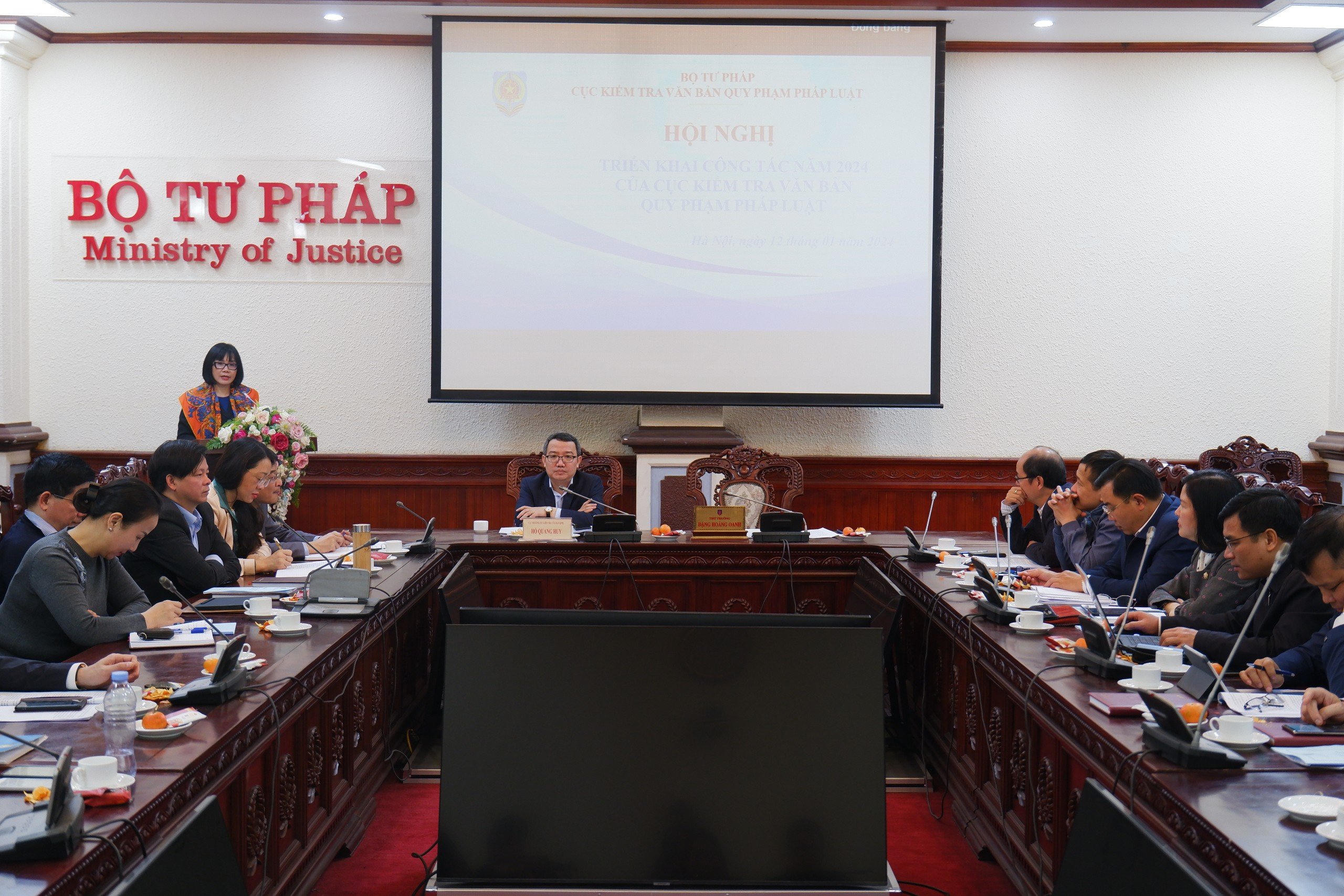 Theo Báo cáo tại Hội nghị, trong năm 2023, với tinh thần nỗ lực, trách nhiệm, chủ động, quyết tâm của Cục Kiểm tra VBQPPL cùng sự quan tâm, chỉ đạo sâu sát của Lãnh đạo Chính phủ và Lãnh đạo Bộ Tư pháp, Cục đã khắc phục khó khăn, triển khai thực hiện đồng bộ, có trọng tâm, trọng điểm các mặt công tác thuộc chức năng, nhiệm vụ hoàn thành đúng tiến độ, có chất lượng, hiệu quả kế hoạch công tác hàng năm của đơn vị và các nhiệm vụ khác theo chỉ đạo của Bộ trưởng, Chính phủ, Thủ tướng Chính phủ.