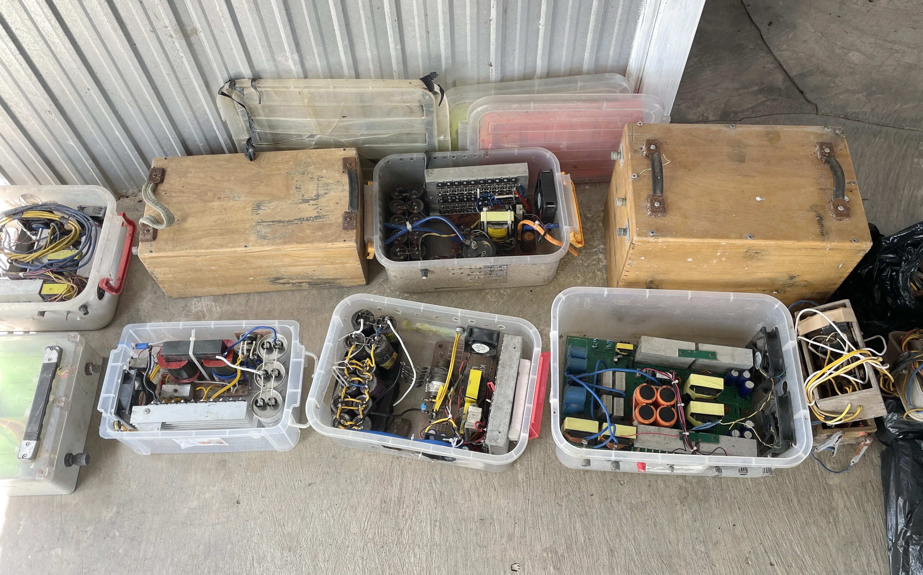Lực lượng Cảnh sát Trạm đường thủy Gành Hào (Phòng Cảnh sát giao thông, Công an tỉnh Bạc Liêu) vận động người dân giao nộp gần 20 bộ xung kích điện. |