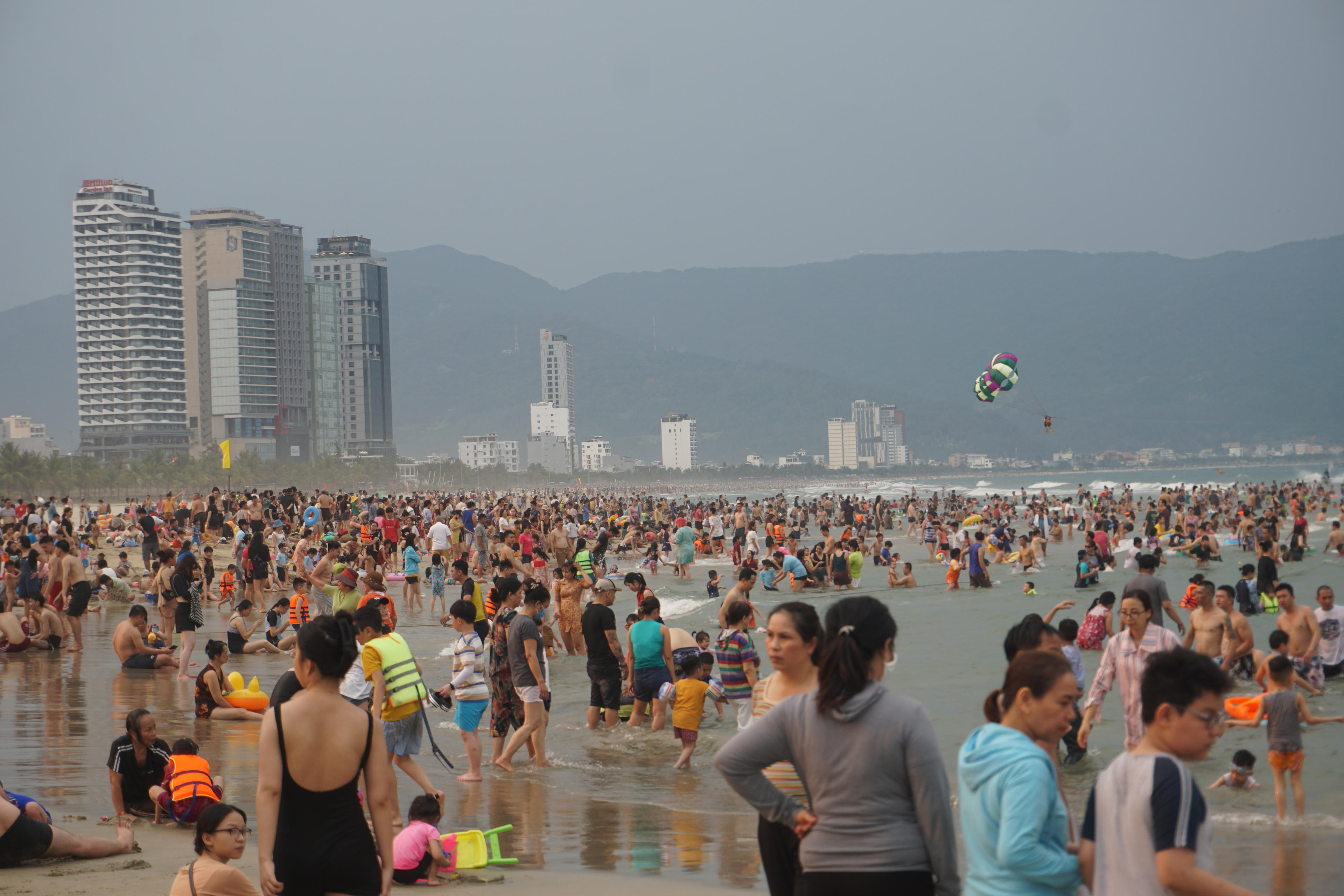 Biển Đà Nẵng đông đúc du khách trong dịp lễ 30/4. |