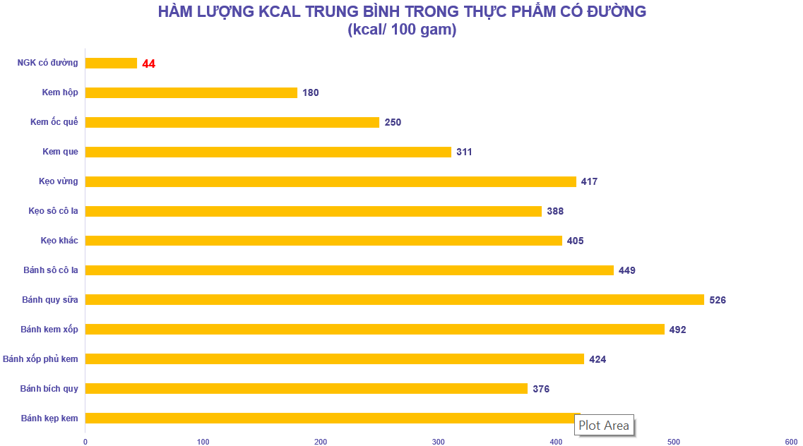 Dựa trên khảo sát của Nielsen thực hiện tại Việt Nam năm 2020, lượng đường trung bình trong nước giải khát là khoảng 11g/100 ml; trong khi đó lượng đường trung bình trong các sản phẩm bánh kẹo là khoảng 29g/100g, trong đó một số loại vượt ngưỡng 40g/100g như kẹo dẻo 46,6g.