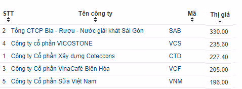 5 cổ phiếu đắt giá nhất thị trường chứng khoán Việt
