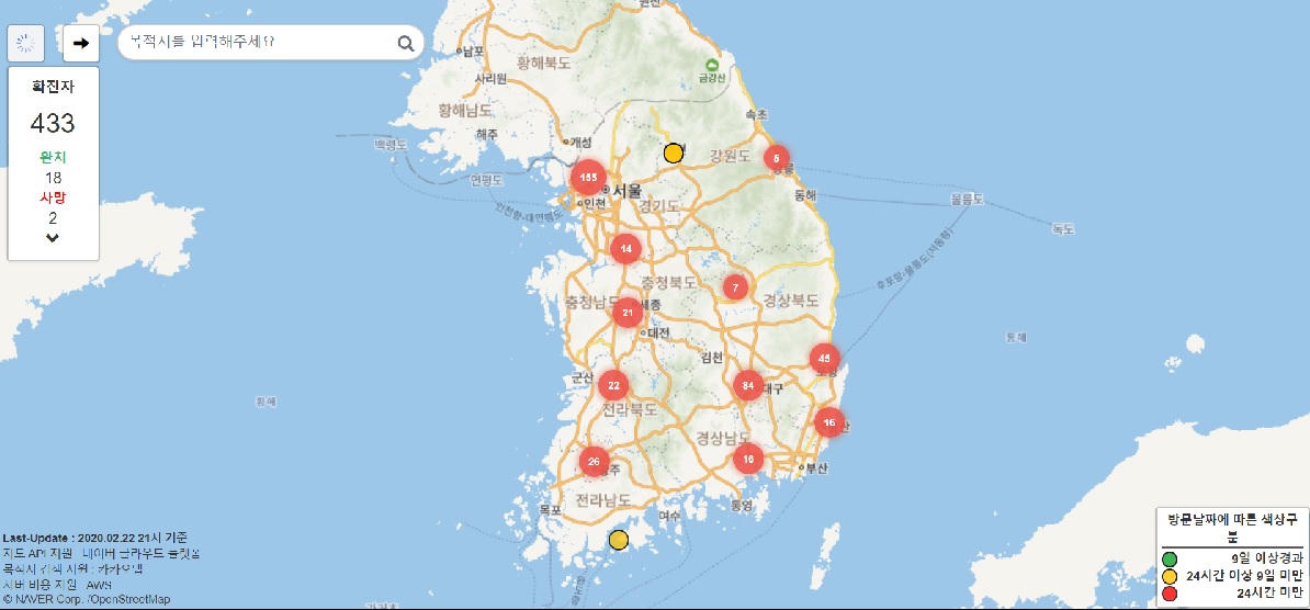 Corona Map do một sinh viên Đại học KyungHee tên là Dong Hoon tạo nên, dựa trên những thông tin xác thực của những người bệnh do Trung tâm Kiểm soát phòng ngừa dịch bệnh cung cấp.