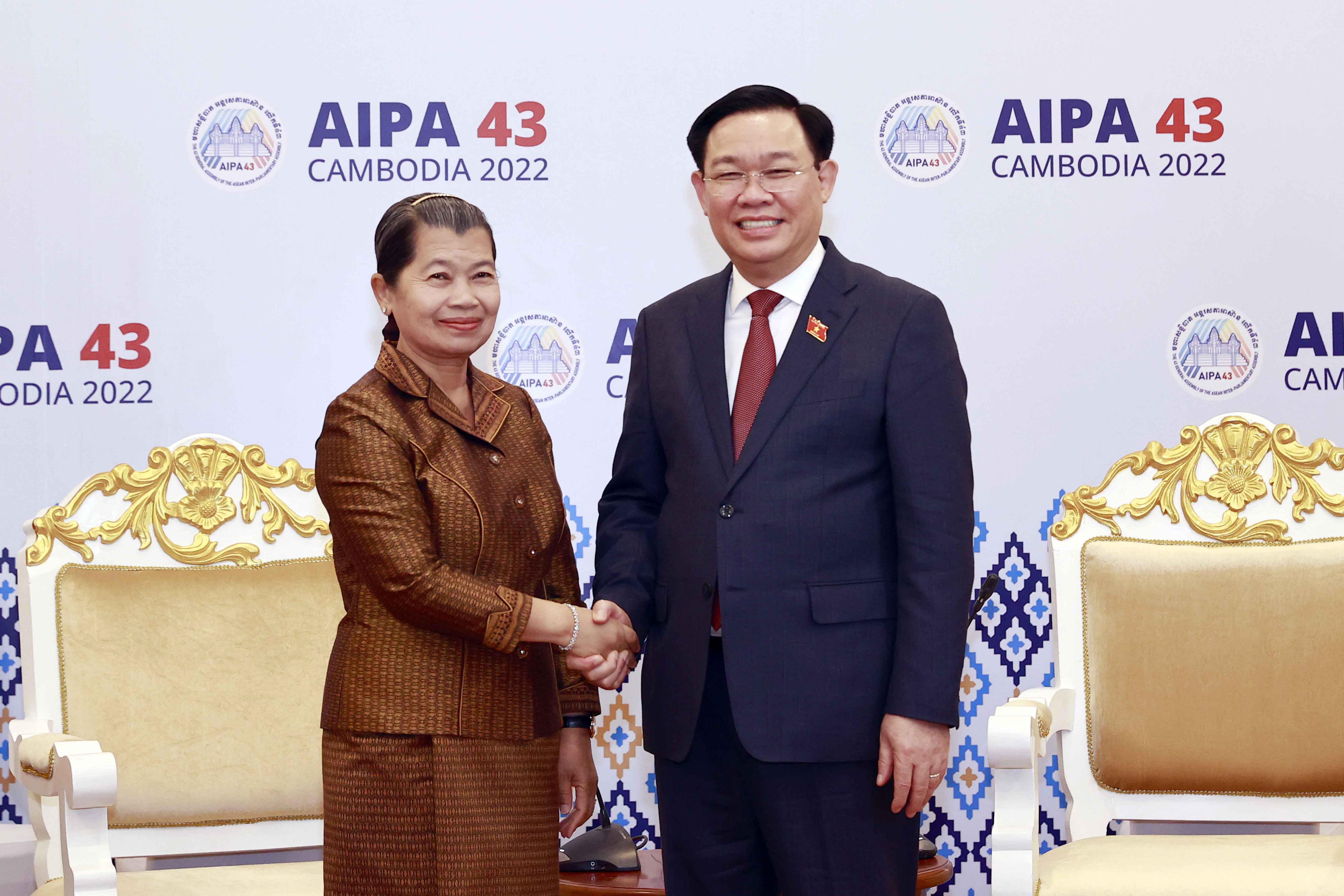 Nhân dịp này, Chủ tịch Quốc hội đã nhiệt liệt chúc mừng Thủ tướng Hun Sen về những kết quả tích cực Campuchia đã đạt được trên cương vị Chủ tịch ASEAN 2022, tổ chức thành công Hội nghị Cấp cao ASEAN lần thứ 40, 41 và các Hội nghị cấp cao liên quan vừa qua; bày tỏ tin tưởng Campuchia sẽ tổ chức thành công Đại hội đồng AIPA-43 tới đây.