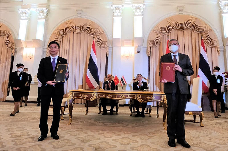 Vào chiều ngày 16/11/2022, ngay sau Lễ đón chính thức và Hội đàm cấp cao giữa Chủ tịch nước Nguyễn Xuân Phúc và Thủ tướng Thái Lan Prayut Chan-o-cha đã diễn ra Lễ ký các văn kiện trước sự chứng kiến của hai Nhà Lãnh đạo. Thừa ủy quyền của Chủ tịch nước, Bộ trưởng Tư pháp Lê Thành Long và Tổng Thư ký Văn phòng Tư pháp Thái Lan Teerasak Ngeyvijit đã ký Hiệp định tương trợ tư pháp trong lĩnh vực dân sự giữa CHXHCN Việt Nam và Vương quốc Thái Lan.