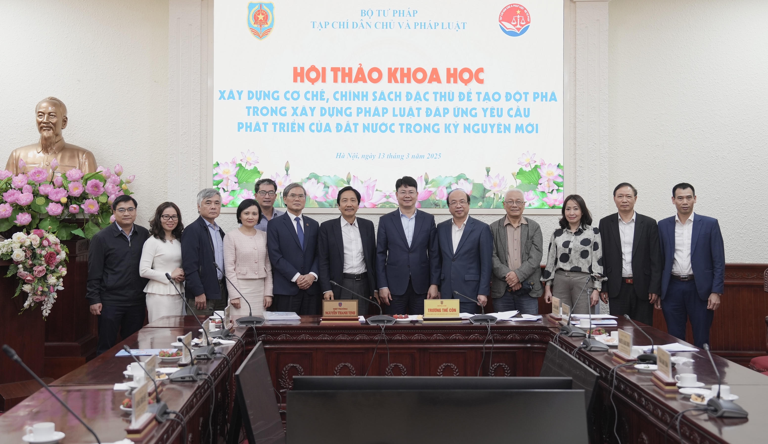 Thứ trưởng Bộ Tư pháp Nguyễn Thanh Tịnh và Tổng biên tập Tạp chí Dân chủ và Pháp luật Trương Thế Côn đồng chủ trì Hội thảo. Tham dự Hội thảo có TS Phan Chí Hiếu – Chủ tịch Viện Hàn lâm Khoa học xã hội Việt Nam; TS Nguyễn Văn Hiển – nguyên Viện trưởng Viện nghiên cứu Lập pháp; GS.TS Võ Khánh Vinh – nguyên Phó chủ tịch Viện Hàn lâm Khoa học xã hội Việt Nam; GS.TS Trần Ngọc Đường – nguyên Phó Chủ nhiệm Ủy ban Pháp luật của Quốc hội; GS.TS Lê Hồng Hạnh – Chủ tịch Trung tâm Trọng tài quốc tế Việt Nam cùng nhiều PGS.TS, TS, các chuyên gia, nhà khoa học, đại diện lãnh đạo các bộ, ngành..