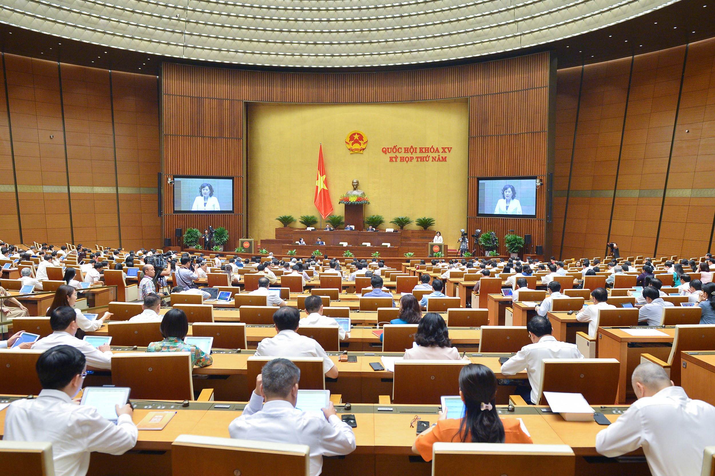 (PLVN) - Tiếp tục chương trình Kỳ họp thứ 5, Quốc hội khóa XV, sáng nay, 5/6, Quốc hội nghe tờ trình và báo cáo thẩm tra dự án Luật Các tổ chức tín dụng(sửa đổi).