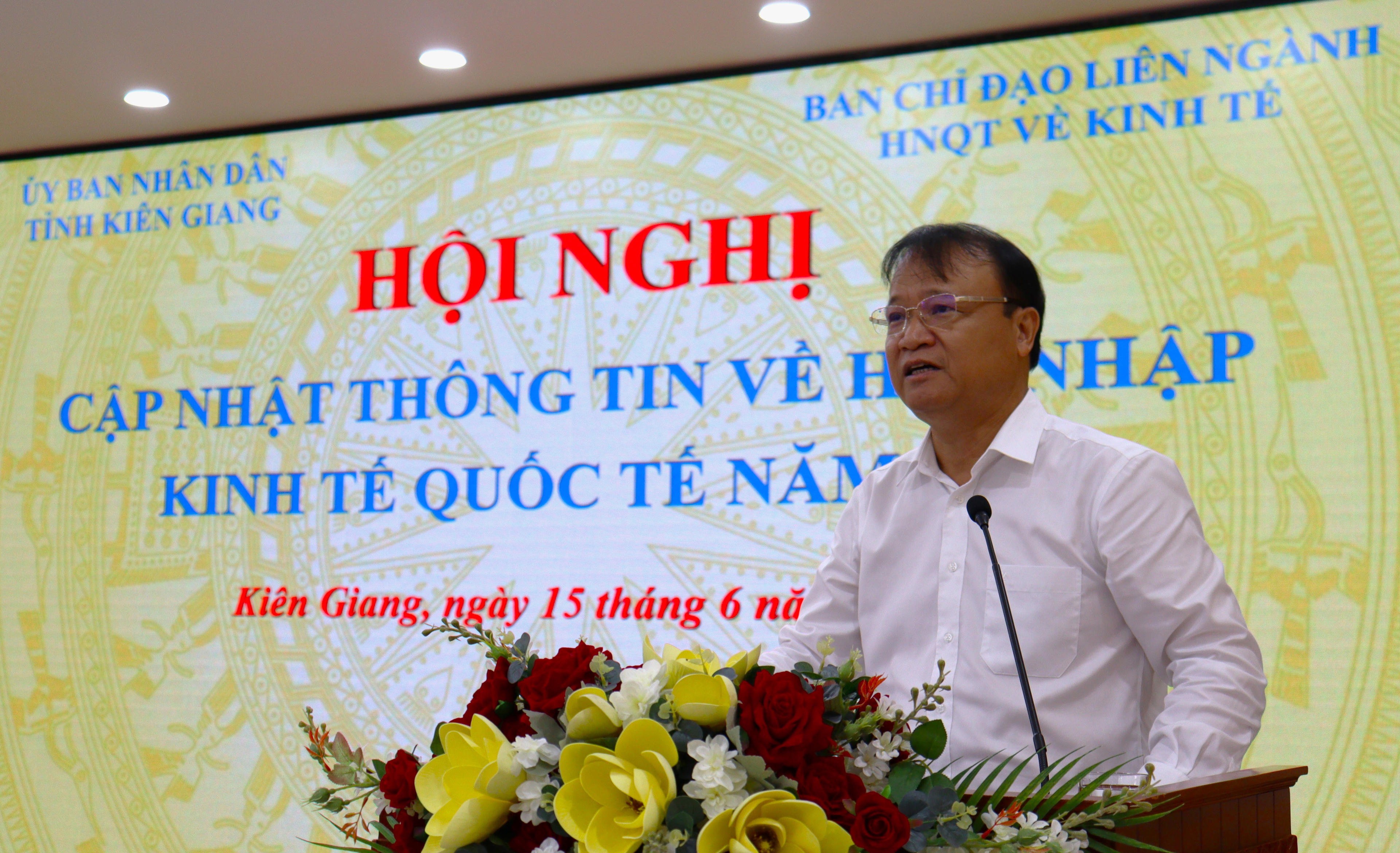 (PLVN) - Ngày 15/6, UBND tỉnh Kiên Giang tổ chức Hội nghị cập nhật thông tin về hội nhập kinh tế quốc tế năm 2023. Thứ trưởng Bộ Công Thương Đỗ Thắng Hải, Tổng Thư ký Ban Chỉ đạo liên ngành Hội nhập quốc tế đến dự và chia sẻ những thông tin về hội nhập kinh tế quốc tế.