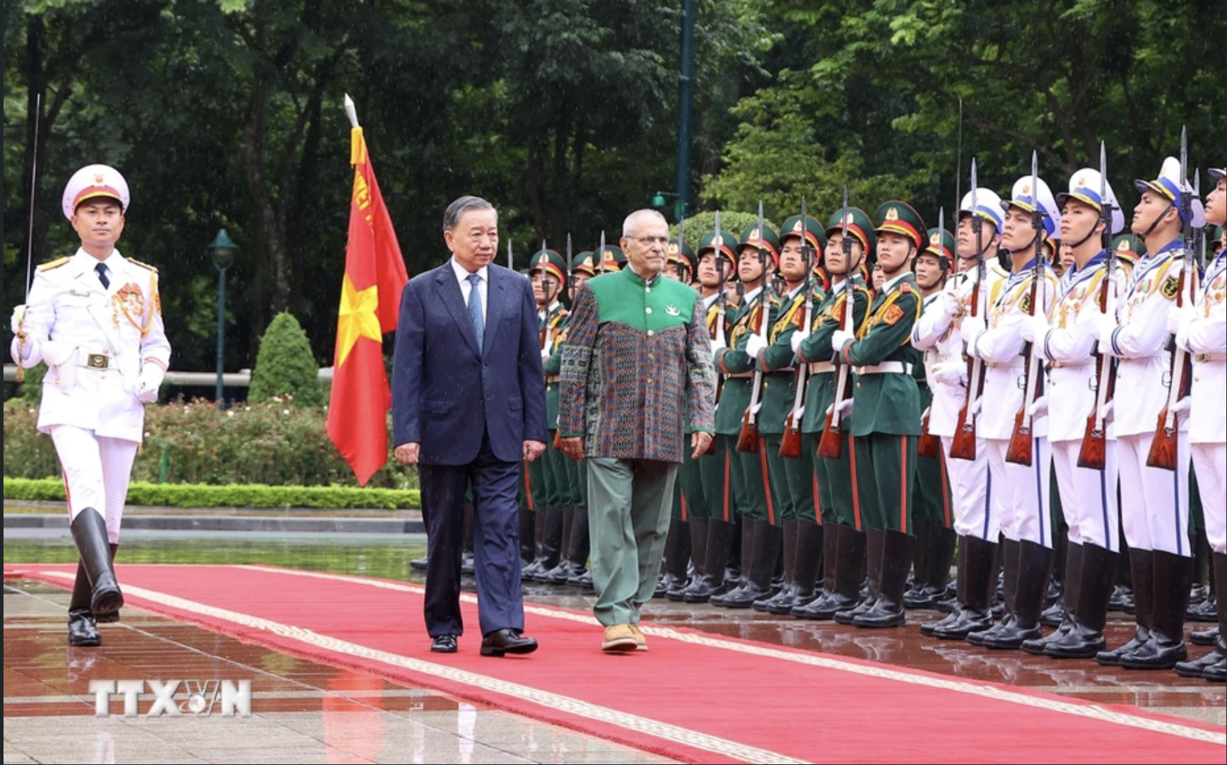 Chủ tịch nước Tô Lâm và Tổng thống José Ramos-Horta duyệt Đội Danh dự Quân đội nhân dân Việt Nam. Ảnh: TTXVN |