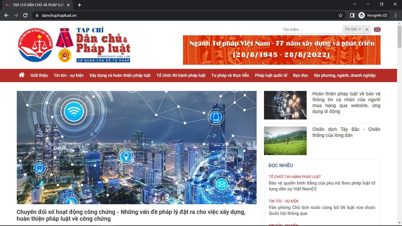 Song hành cùng các ấn phẩm in, Trang thông tin điện tử của Tạp chí Dân chủ và Pháp luật được hình thành từ năm 2014 đã thực sự trở thành diễn đàn pháp lý, dân chủ nghiên cứu, trao đổi về nghiệp vụ và thực tiễn trong xây dựng, thực hiện pháp luật và hoạt động tư pháp nhằm nâng cao trình độ nghiệp vụ cho đội ngũ cán bộ làm công tác tư pháp trong cả nước; trang bị kiến thức pháp luật cần thiết cho các doanh nghiệp trong quá trình hoạt động sản xuất, kinh doanh và một bộ phận quần chúng nhân dân muốn tìm hiểu pháp luật; trao đổi kinh nghiệm, thông tin về hoạt động tư pháp, pháp luật nước ngoài... Các tin, bài được cập nhật liên tục trong ngày, lan tỏa rộng, tính tương tác cao, với số lượng tăng liên tục từ khoảng 300 tin, bài năm 2014 đã lên đến trên 700 tin, bài năm 2022. Đây là nền tảng quan trọng để nâng cao hơn nữa vị thế của Tạp chí, của Bộ và Ngành Tư pháp trong lòng bạn đọc và là cơ sở để tiếp tục phát triển Tạp chí Dân chủ và Pháp luật điện tử trong giai đoạn tiếp theo.