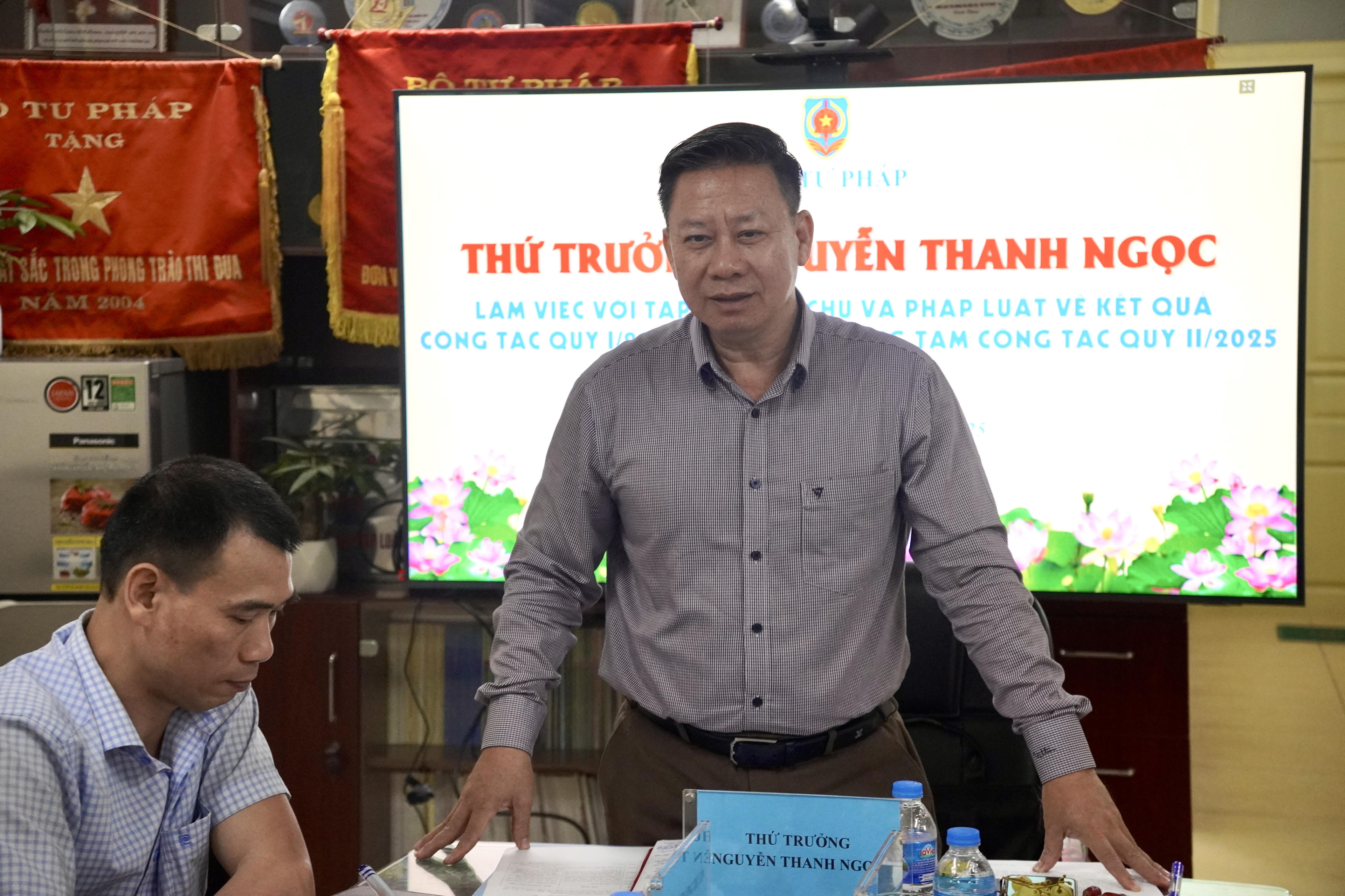 Tại buổi làm việc, sau khi lắng nghe các ý kiến từ Tạp chí Dân chủ và Pháp luật, Thứ trưởng Nguyễn Thanh Ngọc ghi nhận và đánh giá cao đội ngũ nhân sự của Tạp chí với tinh thần yêu nghề, tâm huyết và trình độ chuyên môn tốt.