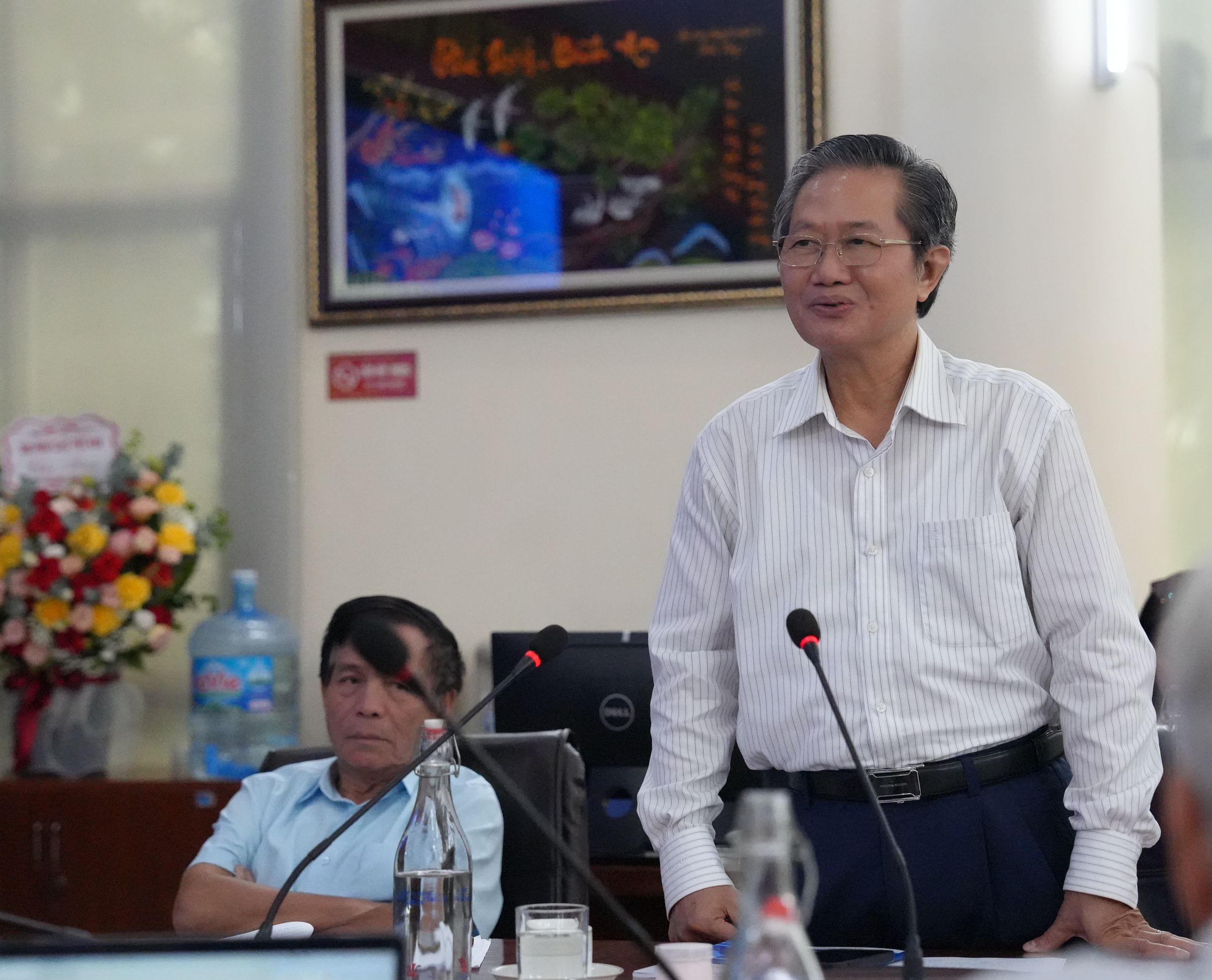 TS Nguyễn Xuân Thu, Giám đốc Học viện Tư pháp tặng hoa chúc mừng Tạp chí Nghề luật. |