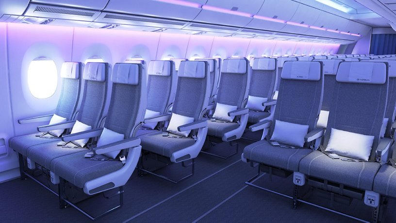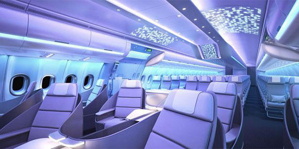 Thiết kế hiện đại cabin Airspace của A350XWB mang lại trải nghiệm bay thoải mái nhất cho hành khách, đặc biệt đối với các đường bay dài xuyên Thái Bình Dương. Cụ thể, khoang hành khách trên máy bay A350-1000 rộng rãi và hoàn toàn yên tĩnh, không gian cá nhân rộng hơn, độ cao cabin tối ưu, không khí trong lành, nhiệt độ và độ ẩm phù hợp giúp giảm thiểu jetlag.