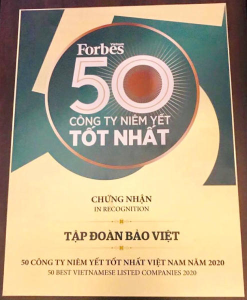 (PLVN) - Ngày 15/10, Forbes Việt Nam tổ chức sự kiện Diễn đàn kinh doanh và Lễ vinh danh “Top 50 công ty niêm yết tốt nhất” năm 2020. Lần thứ 8 Forbes Việt Nam thực hiện danh sách này và cũng là lần thứ 8 Bảo Việt có mặt trong danh sách. Đây là một sự kiện ý nghĩa, được trao cho Tập đoàn Bảo Việt đúng vào ngày thành lập Tập đoàn (ngày 15/10), đánh dấu bước chuyển mình của Bảo Việt sau cổ phần hóa.