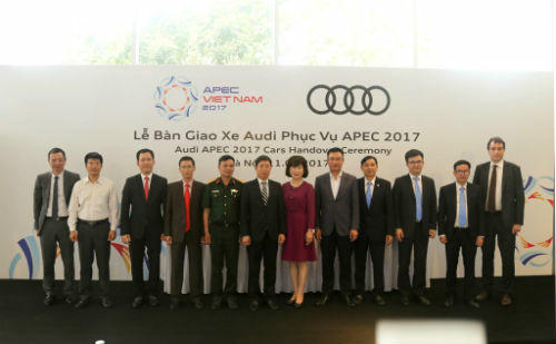 | Đại diện Ban GĐ của Audi Việt Nam và ban lãnh đạo Bảo hiểm Bảo Việt đồng hành cùng Tổ Vận chuyển - Ban vật chất Hậu cần APEC 2017 |