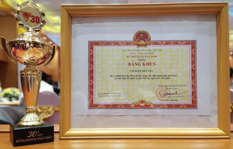 Tập đoàn Bảo Việt đã được Tổng cục Thuế bình chọn trong số 30 “người nộp thuế tiêu biểu” tại “Lễ tôn vinh Người nộp thuế tiêu biểu” nhân tháng doanh nhân Việt Nam và kỷ niệm 30 năm đồng hành và phát triển cùng ngành Thuế đất nước (1990-2020), để biểu dương thành tích xây dựng, phát triển và có đóng góp to lớn cho ngân sách nhà nước của người nộp Thuế.