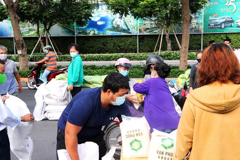 Bên cạnh đó, cộng đồng cư dân Khu đô thị Vạn Phúc cũng đóng góp nhiều tấn gạo trao tận tay cho những gia đình có hoàn cảnh khó khăn của Quận Thủ Đức.
