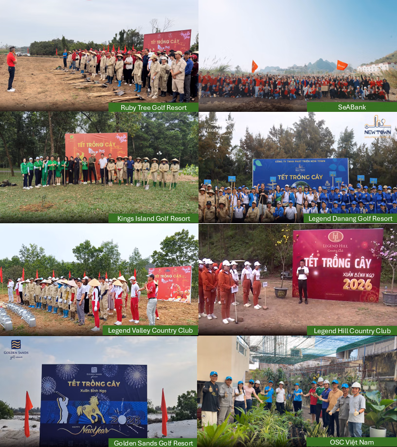 Hoạt động trồng cây được triển khai thường xuyên tại các Công ty Thành viên trong hệ sinh thái Tập đoàn BRG từ hệ thống sân golf, khách sạn đến các khu du lịch quốc tế. Riêng dịp đầu Xuân Bính Ngọ 2026, hơn 20.000 cây xanh đã được trồng, cho thấy việc thực thi chiến lược ESG của Tập đoàn BRG và các Công ty thành viên ngày càng mạnh mẽ.