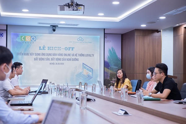 (PLVN) -Nhằm xây dựng và ứng dụng các giải pháp công nghệ phục vụ cho công tác kinh doanh BĐS, BĐS nghỉ dưỡng, ngày 26/8/2020, Tập đoàn CEO và Tổng Công ty Công nghệ và Giải pháp CMC TS (CMC TS) đã tổ chức Lễ Kickoff triển khai Xây dựng ứng dụng bán hàng online và hệ thống Loyalty, đánh dấu sự hợp tác chặt chẽ giữa hai bên.
