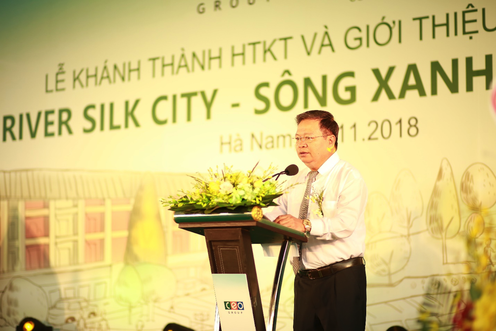 Phát biểu tại buổi lễ, Ông Nguyễn Xuân Đông – Phó Bí thư Tỉnh ủy, Chủ tịch UBND tỉnh Hà Nam đánh giá cao hệ thống hạ tầng kỹ thuật cũng như chất lượng, cảnh quan chung của dự án River Silk City – Sông Xanh:“Năm 2014, River Silk City khánh thành phân kỳ 1, được người dân Hà Nam đón nhận bởi khu đô thị khang trang, hiện đại với đầy đủ các tiện ích như bể bơi, sân tenis, sân cầu lông... Và ngày hôm nay, trong phân kỳ 2 và 3, River Silk City – Sông Xanh vẫn tiếp tục phát triển đồng bộ hạ tầng kỹ thuật cũng như dịch vụ tiện ích cho cư dân tương lai. Đây là điều mà không nhiều doanh nghiệp trên thị trường BĐS làm được. Chúng tôi đánh giá rất cao tâm huyết, uy tín, năng lực của Tập đoàn CEO khi đầu tư vào Hà Nam, với minh chứng cao nhất là tốc độ hoàn thiện, chất lượng dự án River Silk City – Sông Xanh”.
