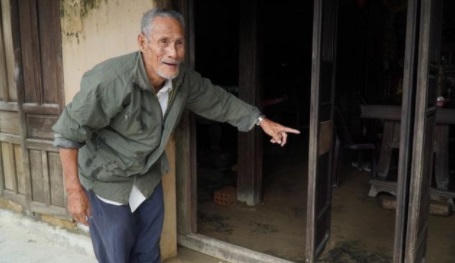 Xã Hương Phong (thị xã Hương Trà, Thừa Thiên Huế) là vùng thuần nông, đời sống người dân còn nhiều khó khăn. Lũ đã rút dần. Chỉ tay về phía cánh cửa, cụ Trần Tình, 94 tuổi, người Hương Phong diễn tả lại mức nước dâng lên cao ngập vào nhà trong đợt lũ lụt vừa qua tại Thừa Thiên Huế. “Hắn lên ngày mỗi lúc một cao, ngập vào trong nhà. Tôi ngồi trong không kịp đưa đồ đạc lên”, cụ Tình kể. Cụ Tình sống một mình tại khu vực chịu ảnh hưởng nặng nề của mùa lũ năm nay.
