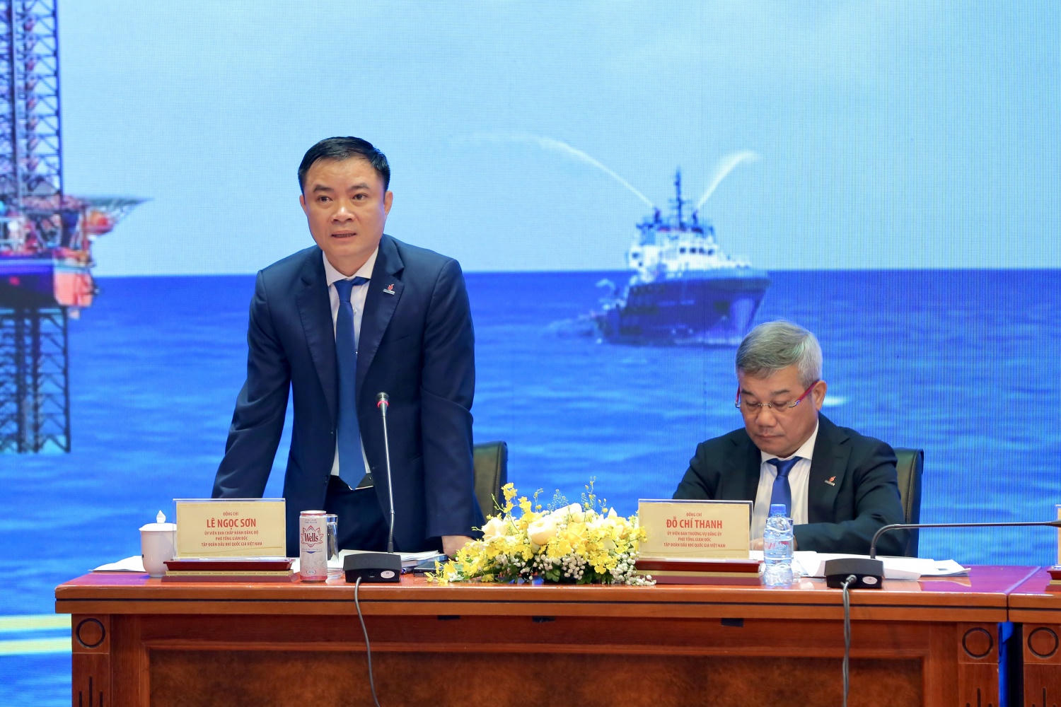 Phó Tổng Giám đốc PVN Lê Ngọc Sơn điều hành tổng kết công tác tìm kiếm, thăm dò, khai thác dầu khí. |