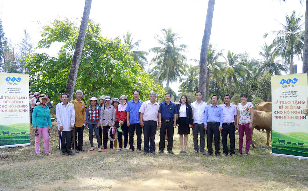 Chương trình trao tặng bê giống của Tập đoàn FLC nhằm hỗ trợ công cụ sản xuất cho các hộ nghèo tại Bình Định, giúp bà con vươn lên thoát nghèo, cải thiện kinh tế, thời góp phần tạo điều kiện để tỉnh Bình Định tiếp tục thực hiện tốt chương trình xây dựng nông thôn mới.