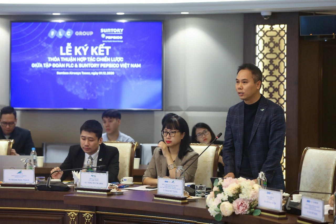 (PLVN) - Ngày 01/12/2020 tại Hà Nội, Tập đoàn FLC và Suntory PepsiCo Vietnam chính thức ký thỏa thuận hợp tác chiến lược với nhiều nội dung quan trọng nhằm phát huy tối đa tiềm năng, thế mạnh của mỗi bên trên nhiều lĩnh vực như đầu tư, sản xuất, kinh doanh, cung ứng và truyền thông.