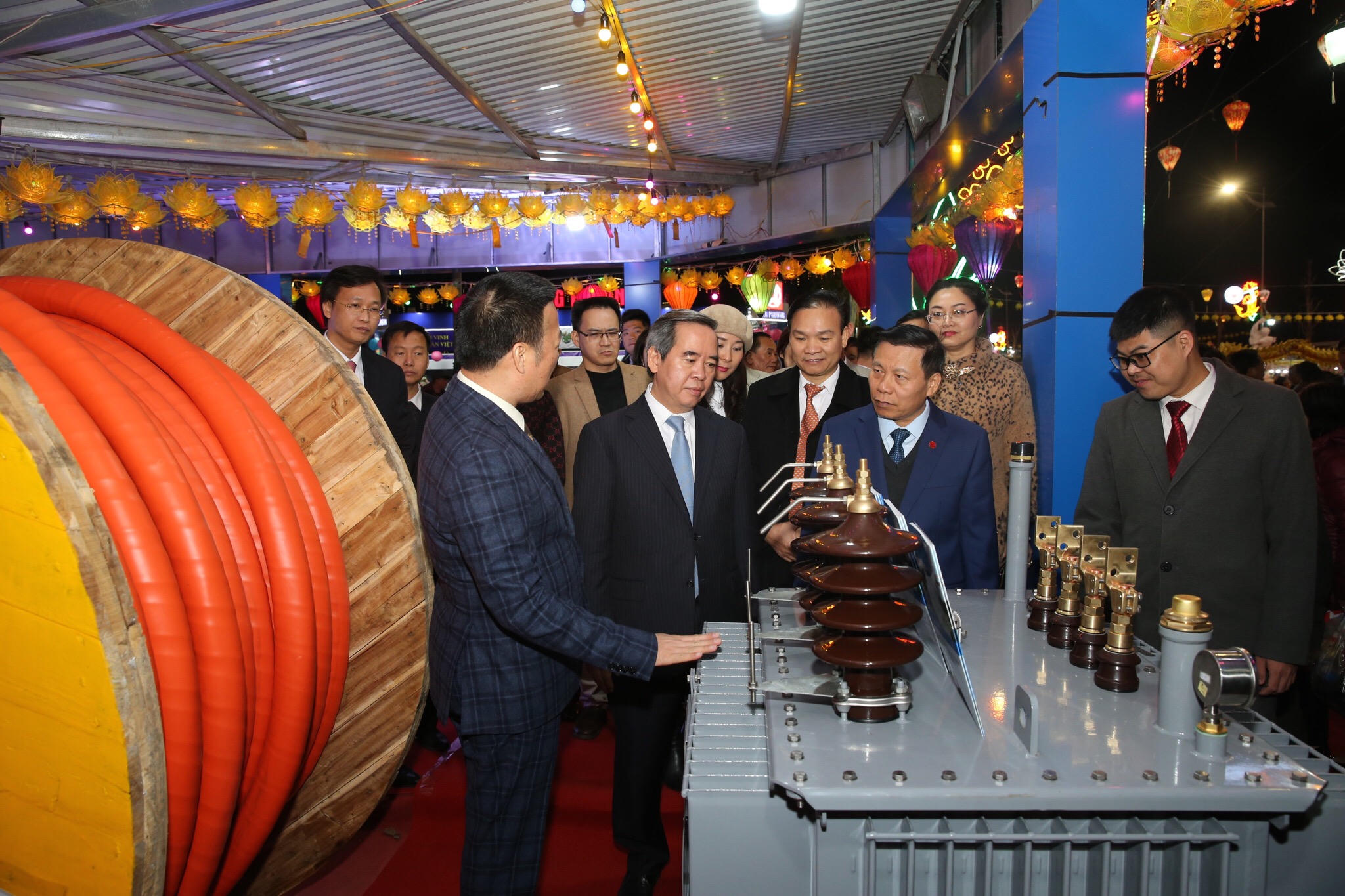 Tại chương trình, các đại biểu thực hiện nghi lễ cắt băng khánh thành Nhà máy Sản xuất máy biến áp truyền tải 220-500kV; trồng cây lưu niệm tại khuôn viên nhà máy và đi thăm khu làng nghề đồ gỗ mỹ nghệ Đồng Kỵ.