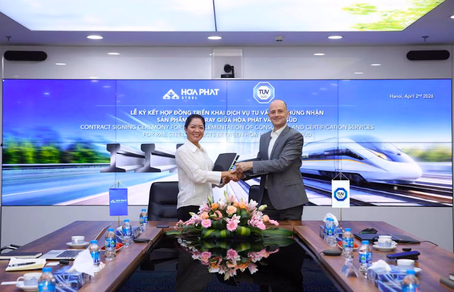 Ngày 2/4/2026, Tập đoàn Hòa Phát (mã ck: HPG) ký kết hợp đồng với TÜV SÜD Rail GmbH (Đức) - tổ chức quốc tế uy tín hàng đầu trong lĩnh vực thử nghiệm, kiểm định và chứng nhận đường sắt.