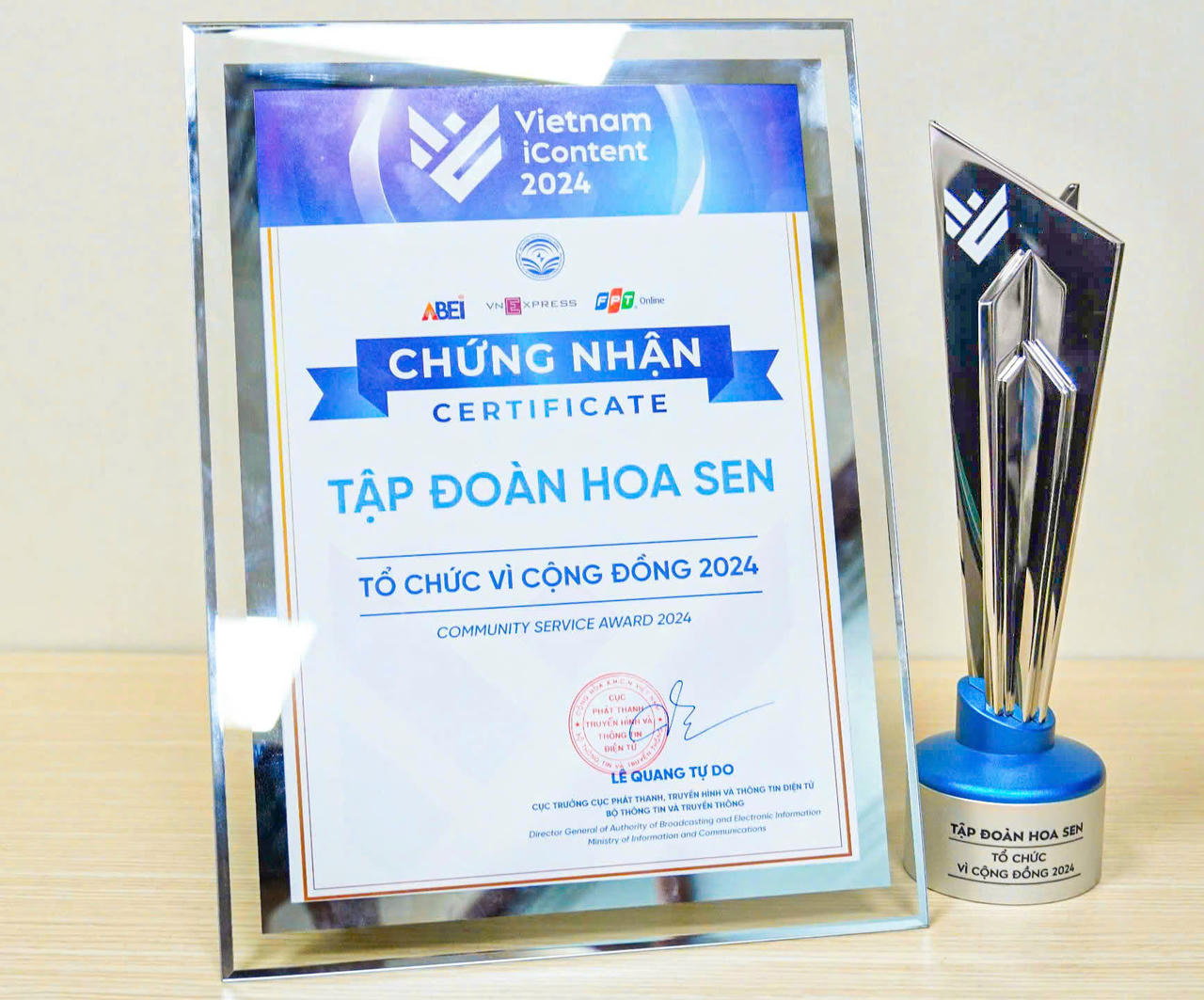 (PLVN) - Tập đoàn Hoa Sen tiếp tục khẳng định giá trị nhân văn bền vững bằng giải thưởng Vietnam iContent Awards 2024 ở hạng mục vinh danh Tổ chức Vì cộng đồng.
