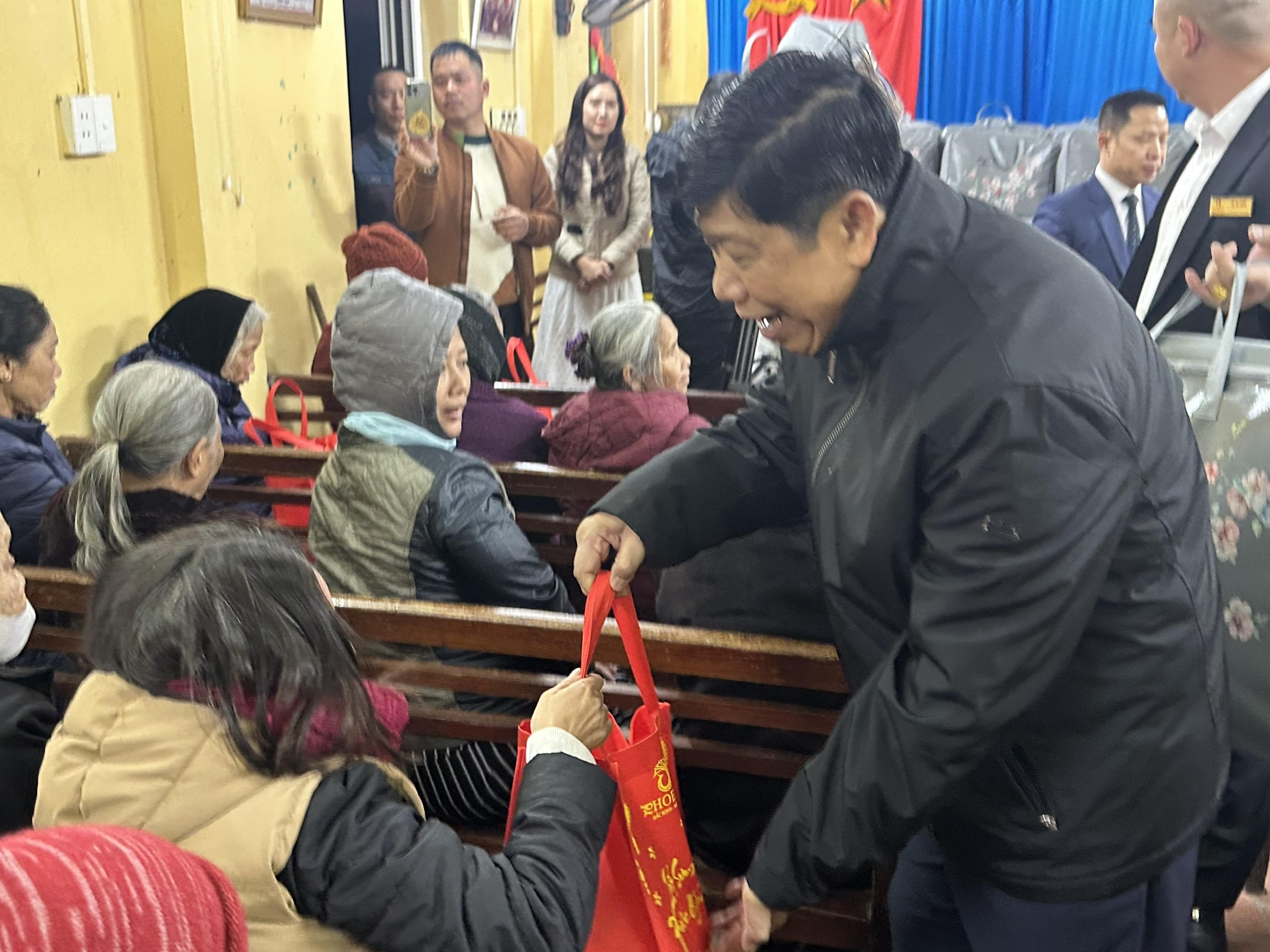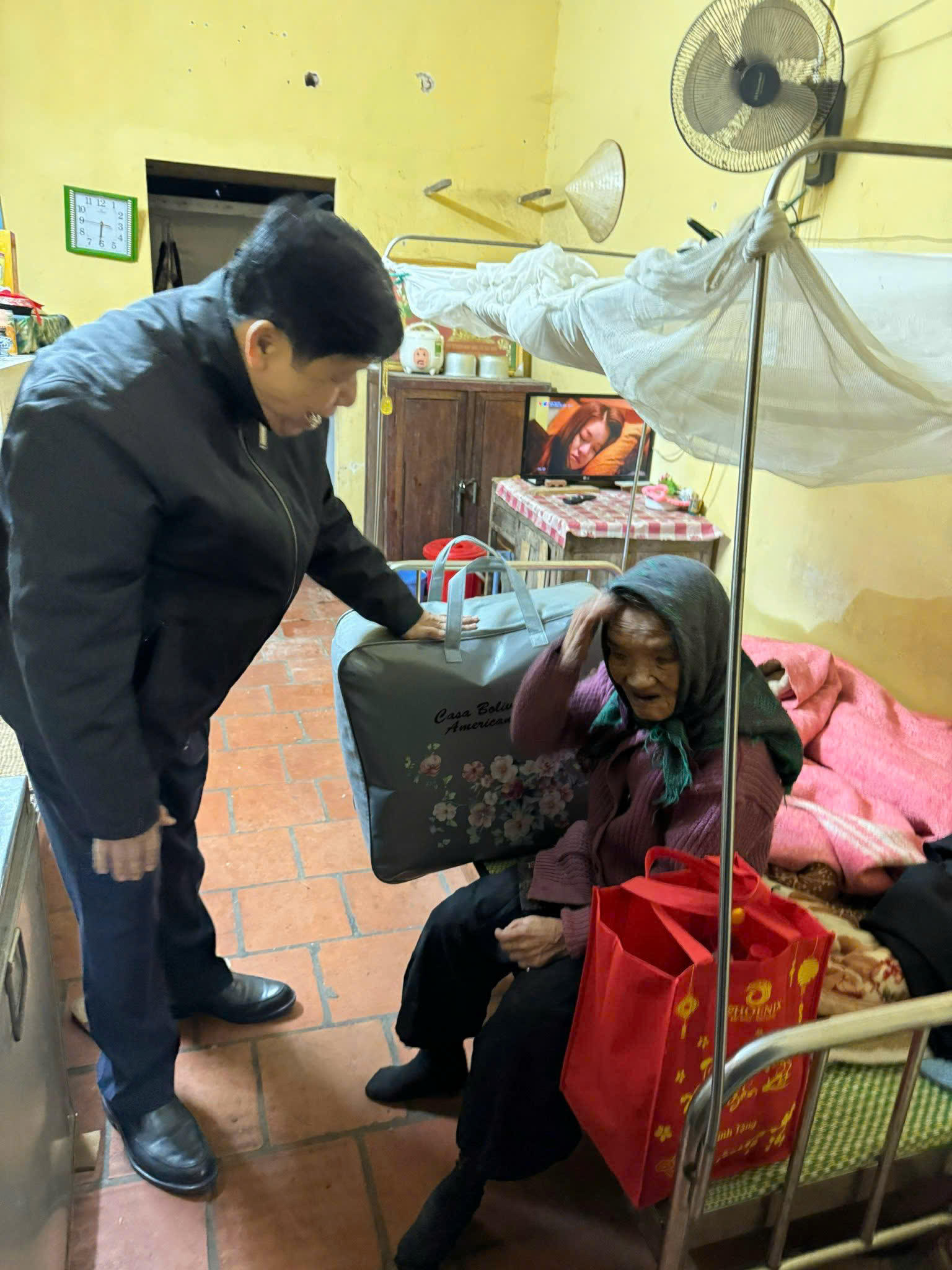 Ông Nguyễn Văn Hùng, Chủ tịch HĐQT Tập đoàn Phượng Hoàng trao quà cho các bệnh nhân cao tuổi tại Bệnh viện Da liễu Bắc Ninh. |