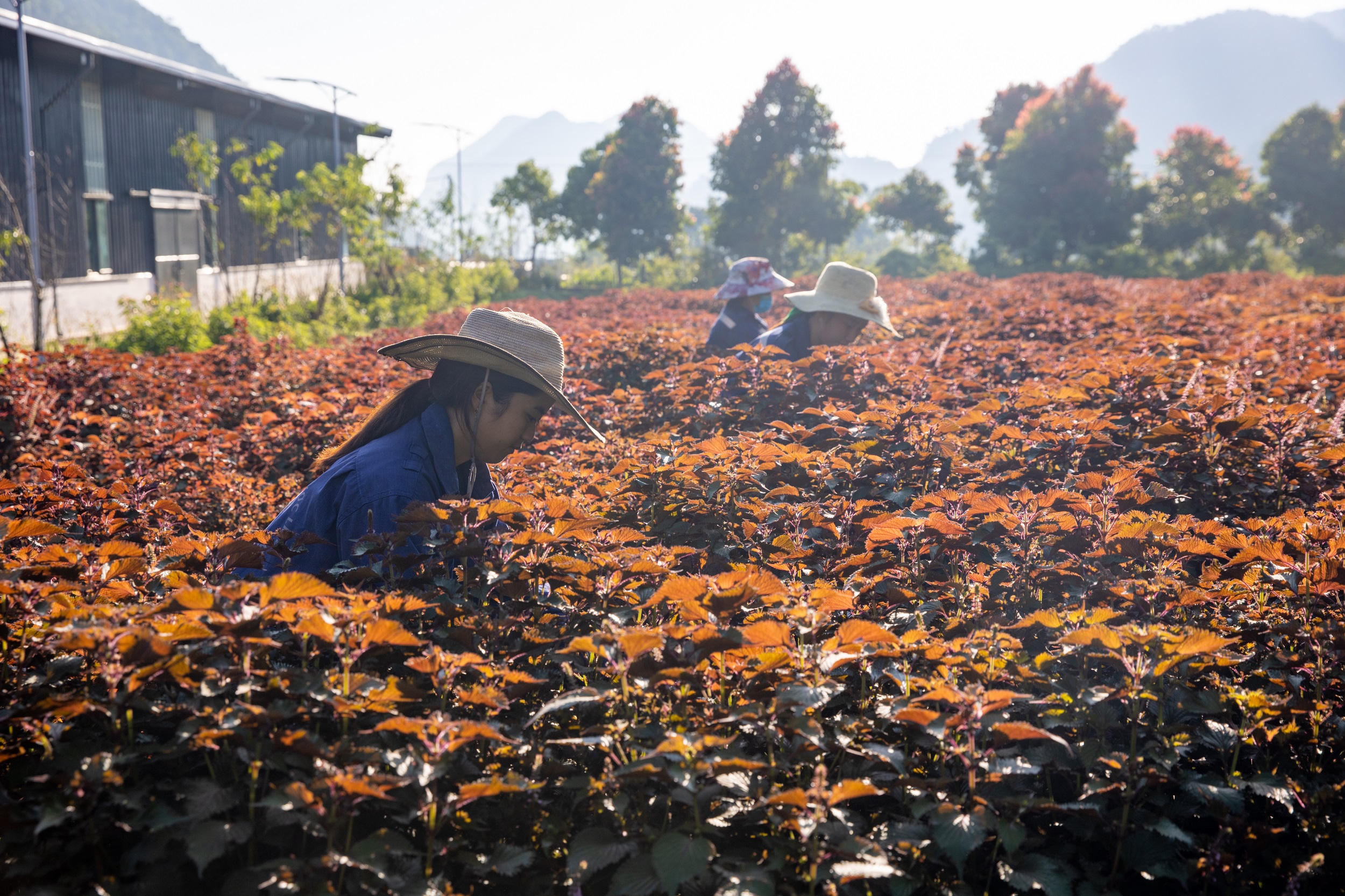 Công nhân trồng và chăm sóc các loại thảo mộc tại Trung tâm Bảo tồn và Phát triển Dược liệu Mường Lống của TH tại Nghệ An. |