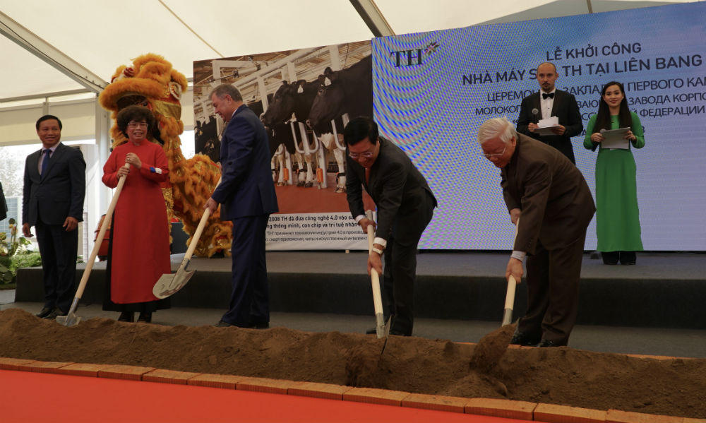Trước đó, ngày 18/5/2016, Tập đoàn TH đã tổ chức Lễ khởi công cụm trang trại đầu tiên thuộc tổ hợp Dự án chăn nuôi bò sữa và chế biến sữa TH tại tỉnh Moscow với sự tham gia của Thủ tướng Chính phủ Nguyễn Xuân Phúc. Chỉ sau 19 tháng, TH đã khánh thành trang trại bò sữa tại Moscow, đón đàn bò sữa đầu tiên 1.100 con nhập khẩu từ Mỹ về Liên bang Nga. Còn tại Kaluga, ngày 18/10/2016, tập đoàn TH khởi công cụm trang trại đầu tiên, tới nay trang trại chuẩn bị hoàn thành. Nhà máy chế biến sữa TH tại Kaluga là hạng mục quan trọng tiếp theo trong chuỗi sản xuất kép kín của tập đoàn TH, chuẩn bị cho ra đời sản phẩm sữa mang thương hiệu TH true MILK tại Liên bang Nga, ghi dấu ấn tự hào về thương hiệu Việt, trí tuệ Việt tại Nga.
