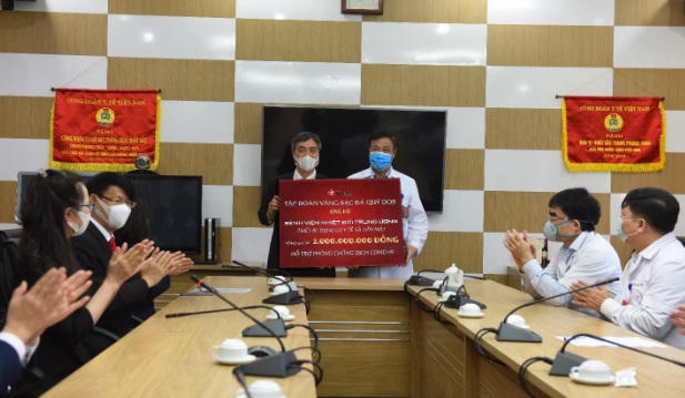 Ông Dương Anh Tuấn – Phó TGĐ Tập đoàn Vàng bạc Đá quý DOJI chia sẻ: “Nhận thức được việc phòng chống dịch không chỉ là của Chính phủ, của Ban chỉ đạo phòng chống dịch, mà là trách nhiệm của toàn dân, Ban lãnh đạo Tập đoàn Vàng bạc Đá quý DOJI đã dành tặng 4 tỷ đồng ủng hộ Bệnh viện Bệnh nhiệt đới Trung ương và Viện Vệ sinh Dịch tễ Trung ương.
