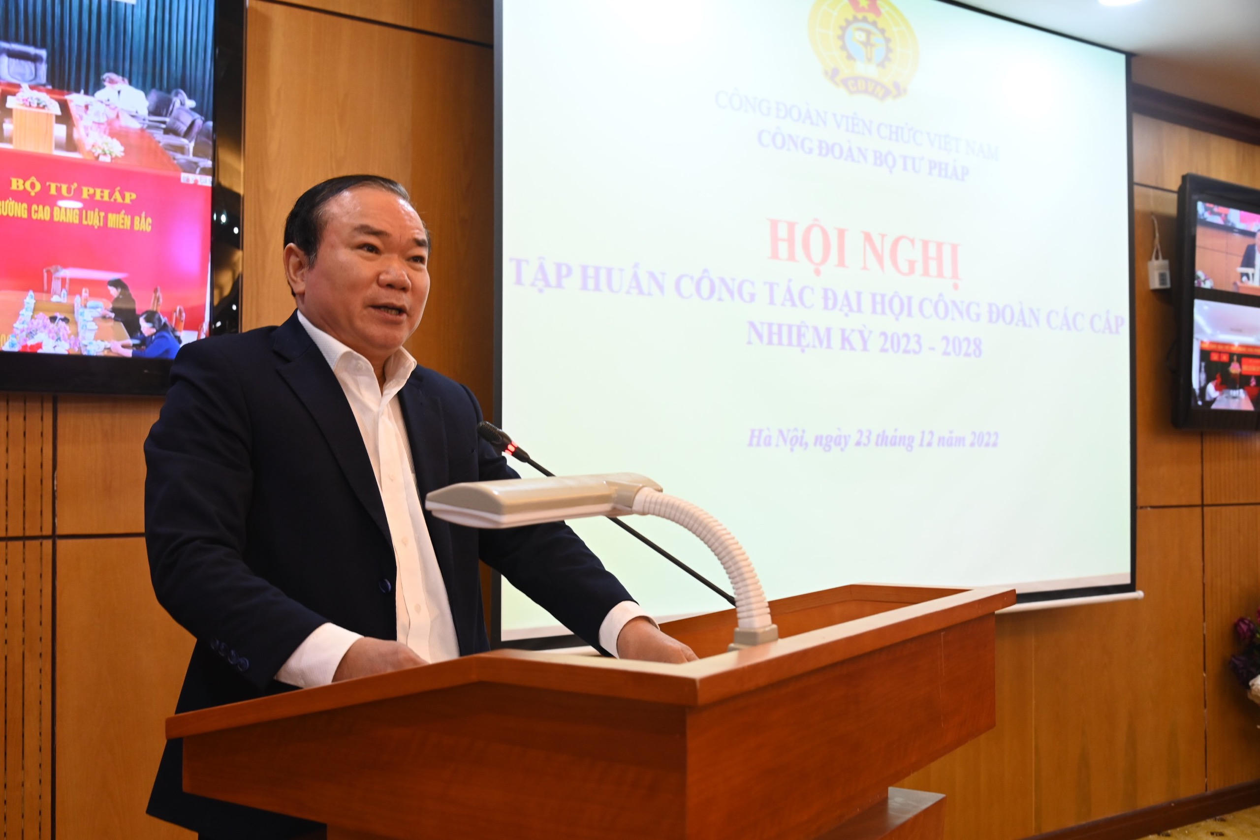 (PLVN) -Sáng 23/12, Công đoàn Bộ Tư pháp đã tổ chức Hội nghị Tập huấn công tác Đại hội Công đoàn các cấp nhiệm kỳ 2023 – 2028 do đồng chí Khương Thị Thanh Huyền, Chủ tịch Công đoàn Bộ chủ trì.