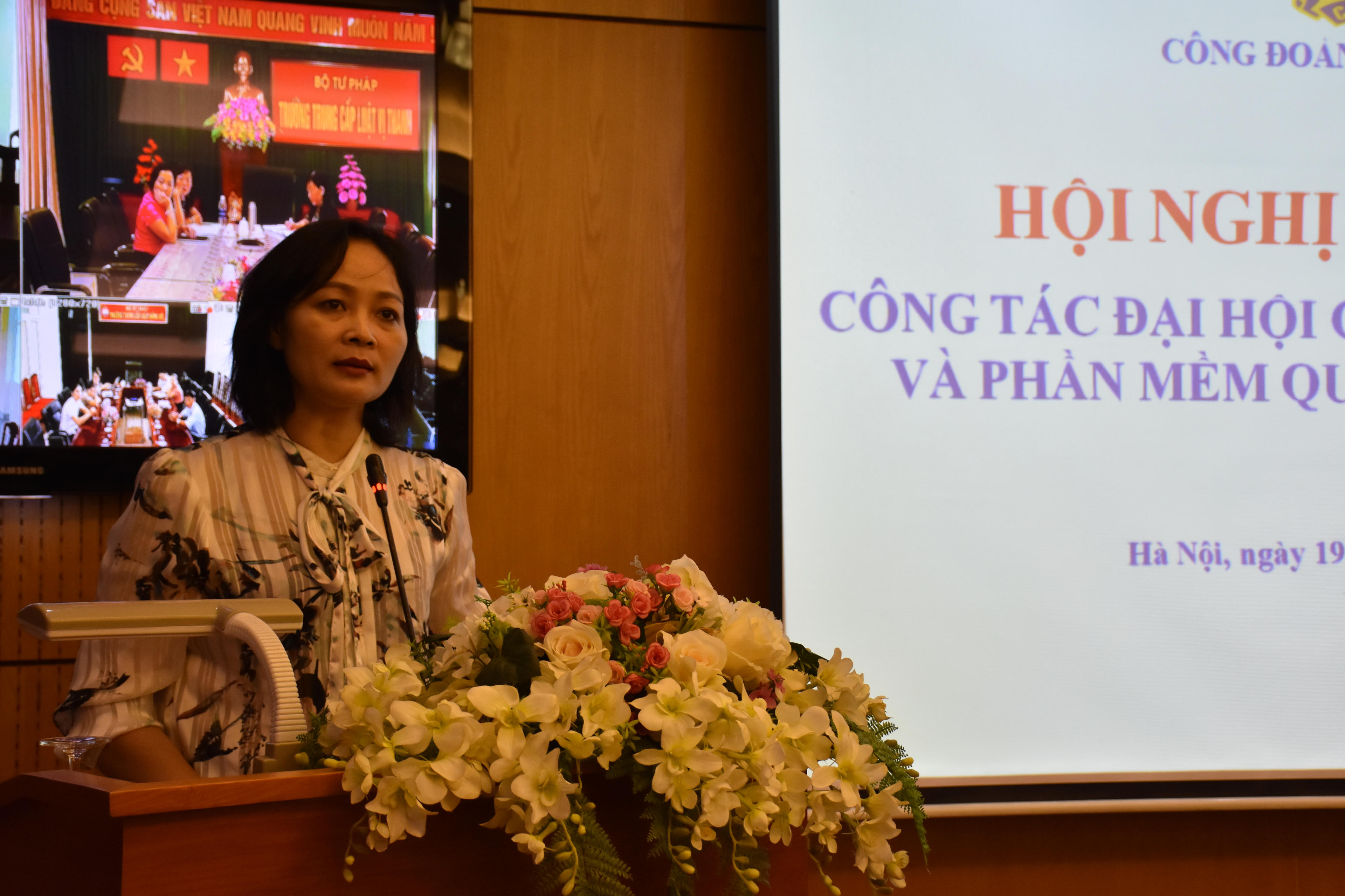 Được sự nhất trí của Đảng ủy, Lãnh đạo Bộ, Ban Thường vụ Công đoàn Bộ Tư pháp, ngày 19/9, Công đoàn Bộ Tư pháp đã tổ chức Hội nghị tập huấn công tác tổ chức đại hội công đoàn các cấp và phần mềm quản lý đoàn viên. Tham dự hội nghị có bà Nguyễn Giang Tuệ Minh Phó Chủ tịch thường trực Công đoàn Viên chức Việt Nam; bà Khương Thị Thanh Huyền, Chủ tịch công đoàn Bộ Tư pháp. Hội nghị được triển khai trực tuyến tại 07 điểm cầu.